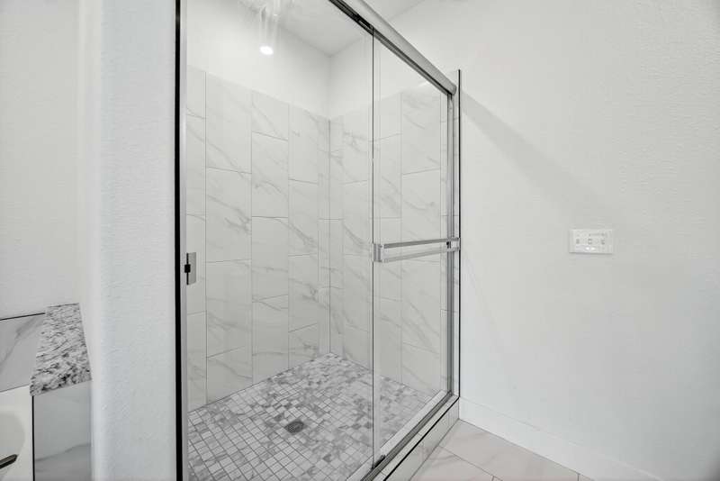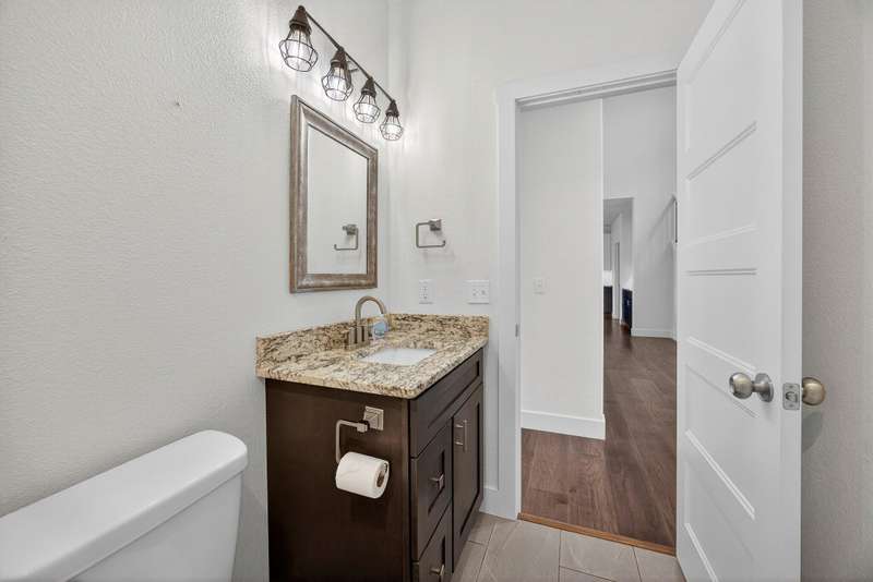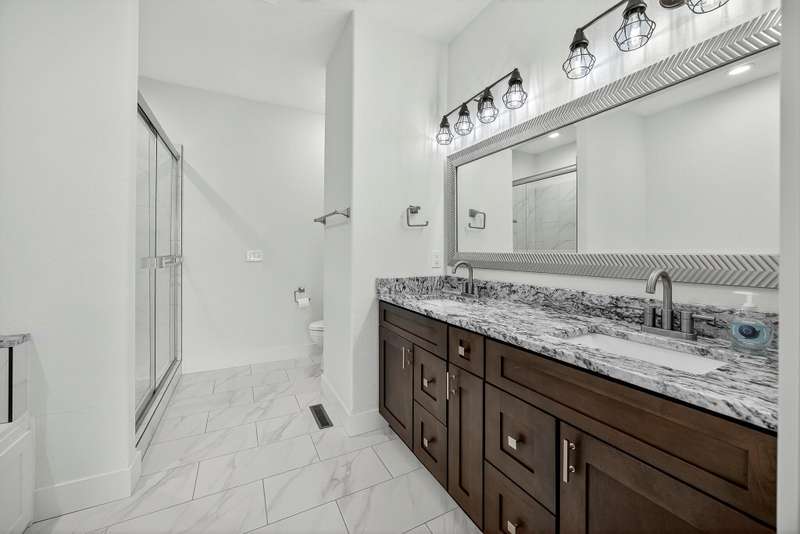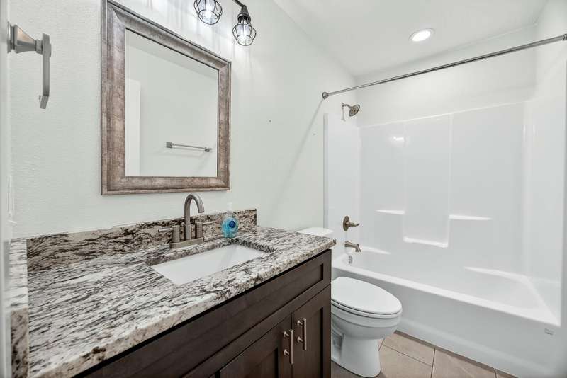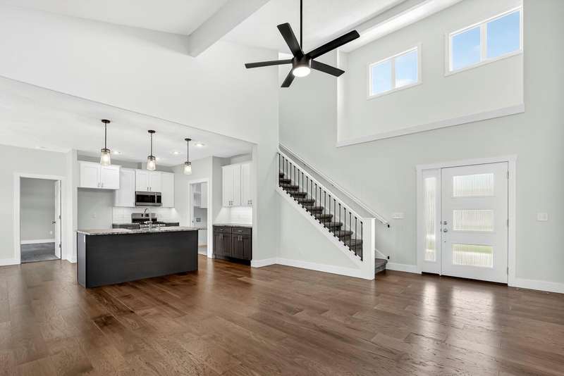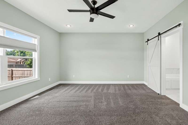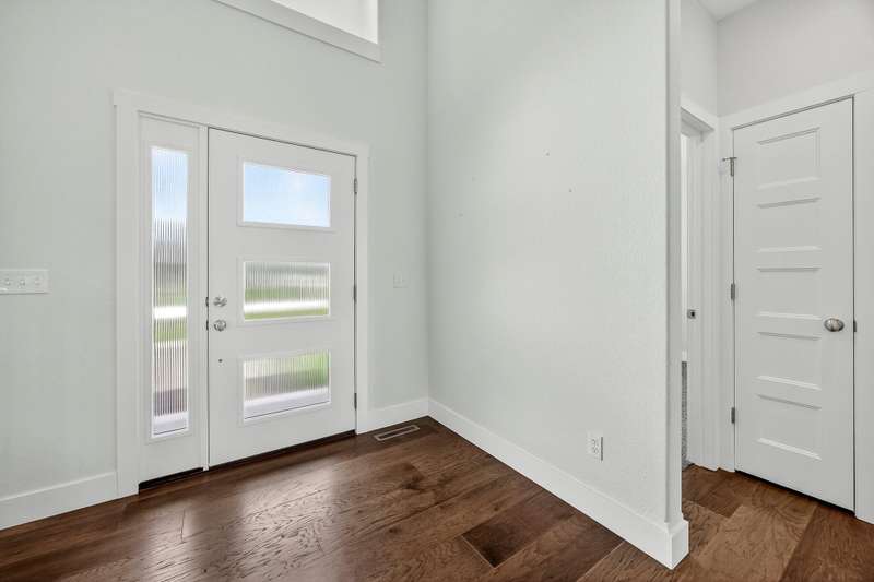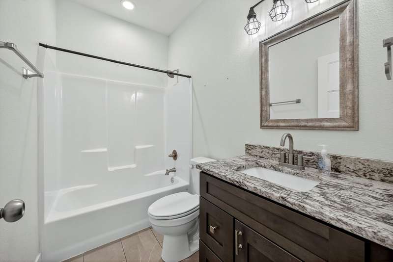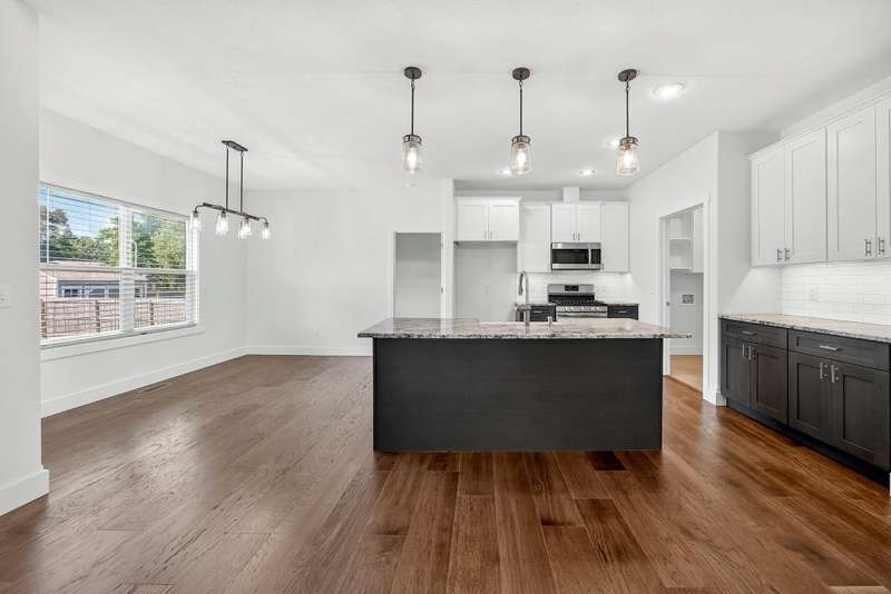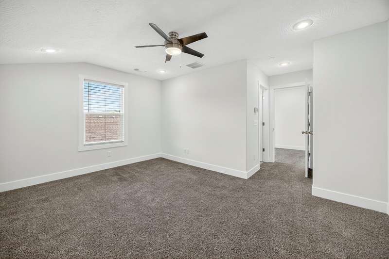 Discover this stunning modern home by Richland Homes, a true standout in the neighborhood. As you approach, the home's striking design immediately catches the eye, with a sleek combination of white brick and dark wood that creates an elegant contrast. The contemporary garage doors perfectly complement the overall aesthetic, while soffit lighting accentuates the inviting front porch adorned with warm wood siding.Inside, the spacious entryway welcomes you with soaring ceilings and natural light pouring in from the loft windows. The focal point of the room is the fireplace, featuring shiplap detailing, which seamlessly flows into the open-concept kitchen and dining area. The kitchen is a chef's dream, with exotic granite countertops offering ample space for both meal prep and casual dining. Under-cabinet lighting highlights the subway tile backsplash, and the farmhouse sink adds character to the space. A clever design feature includes a pantry just off the kitchen.The primary bedroom is tucked away for privacy and provides a generous layout, including a dual vanity with matching granite counters. The luxurious shower with tile flooring and separate tub offer the perfect retreat. Plus, a storm shelter is conveniently integrated into the master closet for added safety. Two additional bedrooms are located on the main floor, with one featuring a dramatic ceiling with wooden beams and plenty of natural light.Upstairs, you'll find a stylish office space with beautiful railings and lighting. A full bathroom and a large bedroom with craftsman-style doors complete the upper level.Step outside to the covered porch, which overlooks a privacy-fenced backyard. A unique feature of this home is the extended yard beyond the fence.