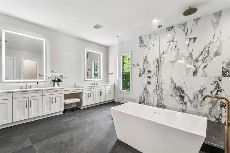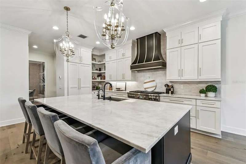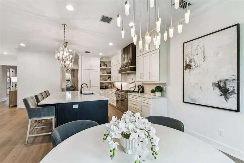 Welcome to an extraordinary blend of luxury, location, and lifestyle in one of South Tampa’s most coveted neighborhoods. This stunning new construction masterpiece by Momentum Homes offers 5 bedrooms, 4.5 baths, and over 4,500 square feet of expertly designed living space—crafted for both everyday comfort and elegant entertaining. This home stood high and dry with no issues throughout hurricane season. Built solid with block construction on both levels and impact-rated Low E windows, this home marries timeless architecture with modern durability. Step inside to find wide-plank white oak flooring, custom wood cabinetry, and a chef’s dream kitchen featuring a 48” Thermador gas cooktop, quartz island, butler’s pantry, and functional mudroom. The open-concept living area is anchored by a showstopping gas fireplace and flows seamlessly into a dedicated office and media room. Retreat to the first-floor guest suite with en-suite bath and direct pool access—ideal for visitors or multigenerational living. Upstairs, the luxurious primary suite impresses with an oversized walk-in closet and spa-inspired bath complete with a freestanding soaking tub and frameless glass shower. Out back, enjoy a true resort-style escape: a sparkling pool and spa, covered patio with built-in grill, sink, refrigerator, and lush professional landscaping framed by a classic brick-paver driveway. Zoned for top-rated Grady, Coleman, and Plant schools. This is more than a home—it’s a statement. Don’t miss your chance to own a rare new construction offering in Swann Estates.