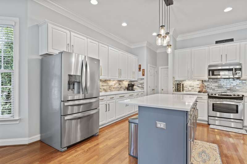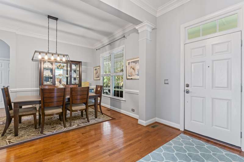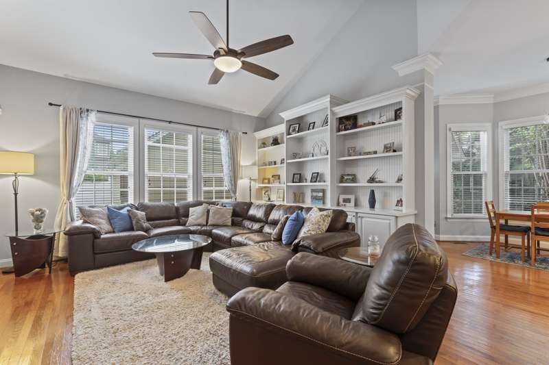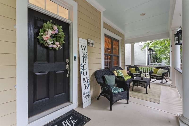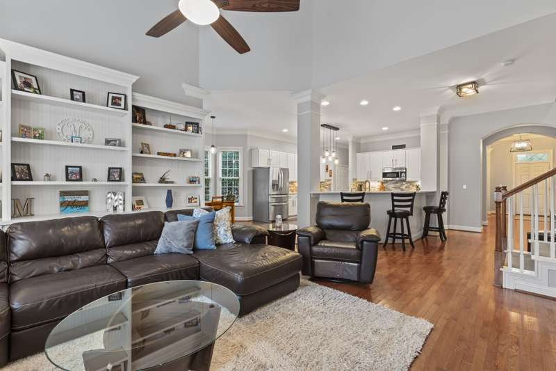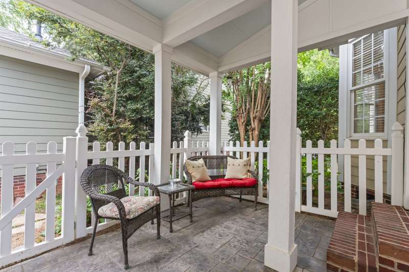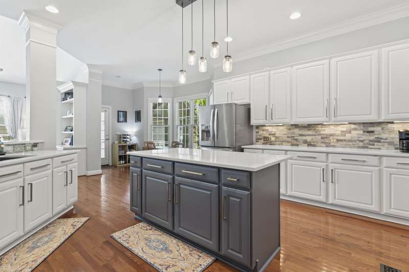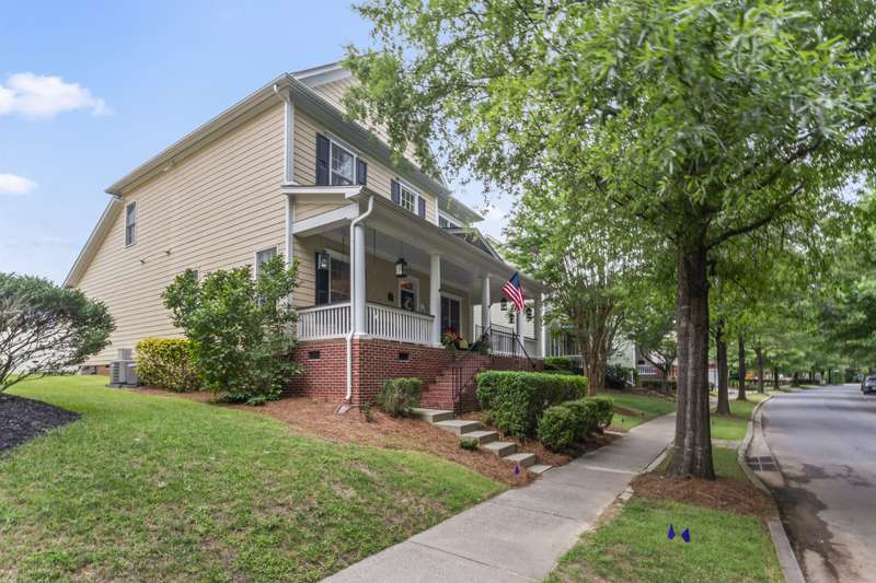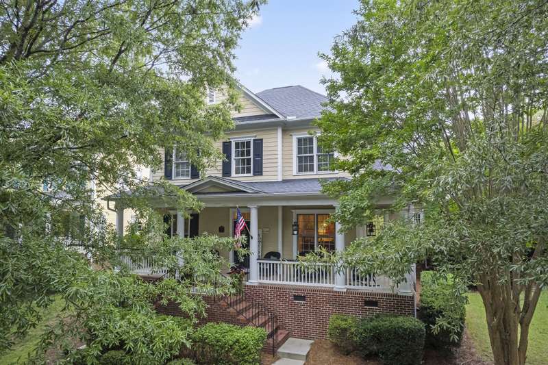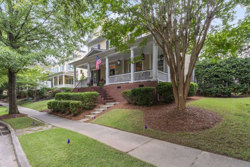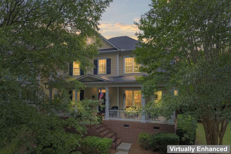Walking up to this Charleston Style home with HUGE front porch and mature tree-lined (with sidewalks) street, you KNOW you are home! Entering, you are greeted with 10' ceilings and custom millwork (think crown molding, baseboards and built-ins throughout). Hardwood floors run throughout the main floor living area which includes a dining room & den that can also be an office. The updated kitchen features quartz countertops, freshened cabinets w/soft close hinges, updated lighting & oversized sink! The open floorplan family room has walls of built-ins & a gas fireplace. The large primary bedroom & updated en-suite featuring over-sized walk-in shower & stand alone tub is also on the main floor.Upstairs includes a loft area, bonus room, 3 bedrooms and 2 full baths. Outside is a fenced in entertainers dream and detached 2.5 car garage! Centrally located just steps away from the elementary school, Baxter Y, pocket parks and Main Street, this location is what you've been waiting for!