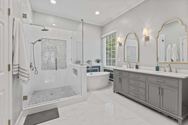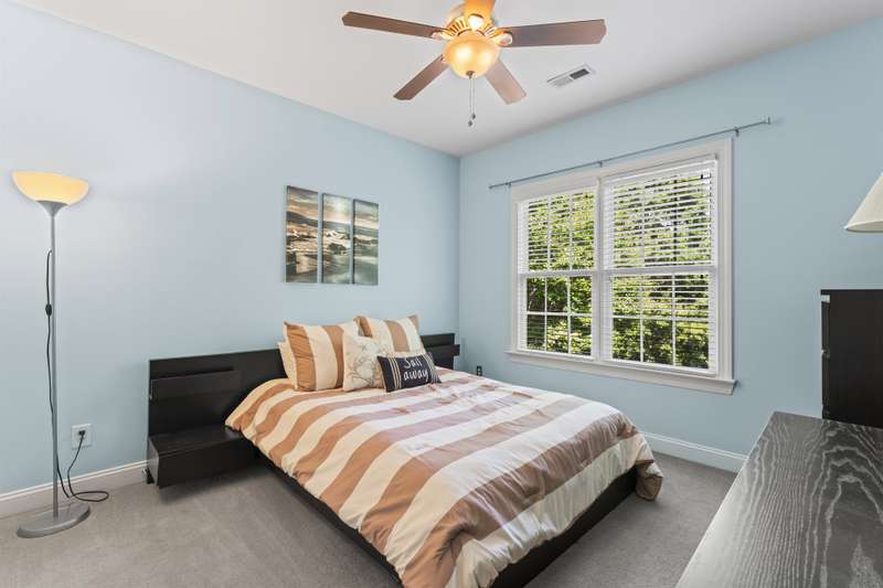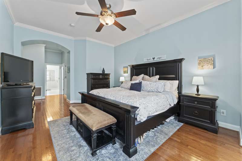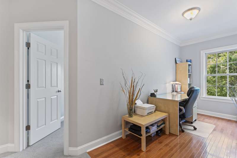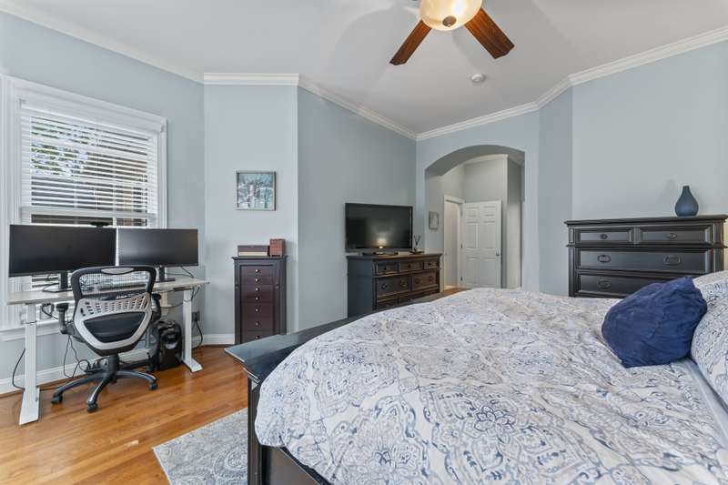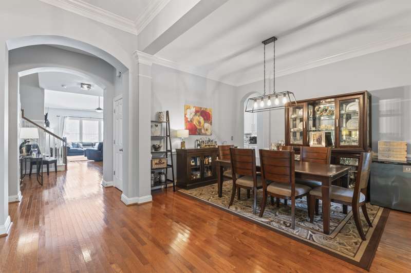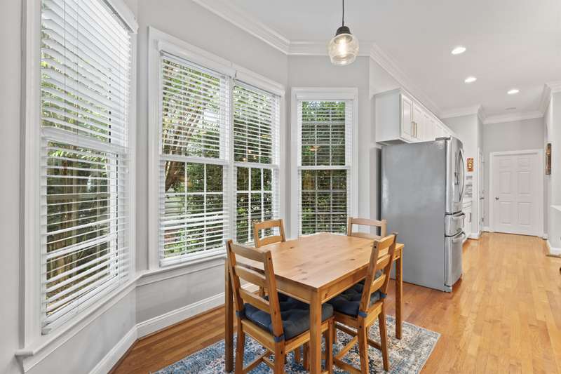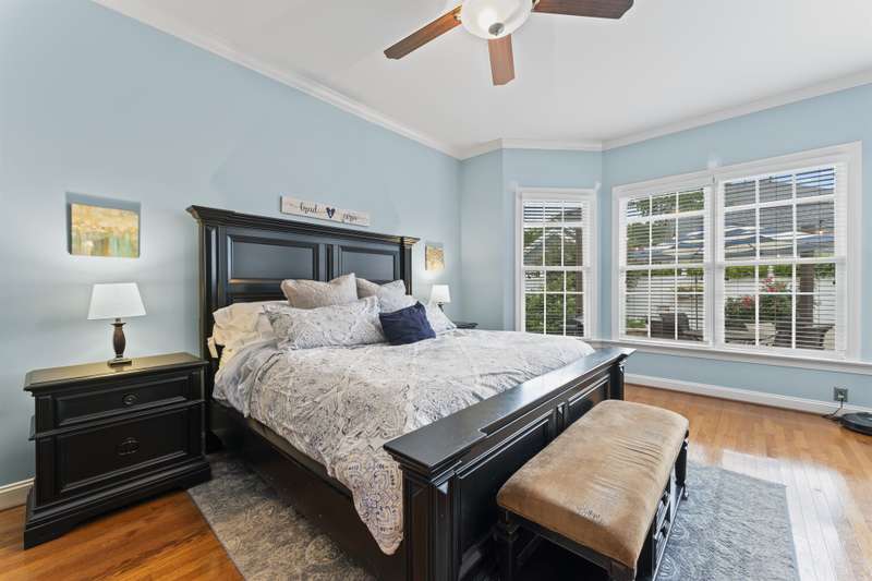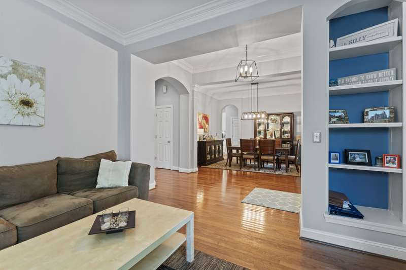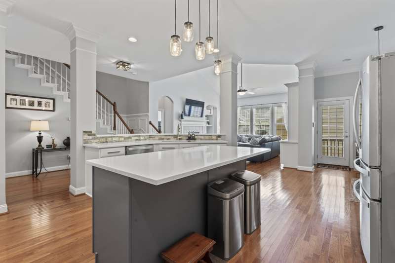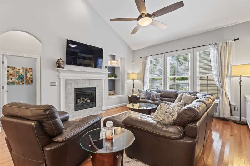 Walking up to this Charleston Style home with HUGE front porch and mature tree-lined (with sidewalks) street, you KNOW you are home! Entering, you are greeted with 10' ceilings and custom millwork (think crown molding, baseboards and built-ins throughout). Hardwood floors run throughout the main floor living area which includes a dining room & den that can also be an office. The updated kitchen features quartz countertops, freshened cabinets w/soft close hinges, updated lighting & oversized sink! The open floorplan family room has walls of built-ins & a gas fireplace. The large primary bedroom & updated en-suite featuring over-sized walk-in shower & stand alone tub is also on the main floor.Upstairs includes a loft area, bonus room, 3 bedrooms and 2 full baths. Outside is a fenced in entertainers dream and detached 2.5 car garage! Centrally located just steps away from the elementary school, Baxter Y, pocket parks and Main Street, this location is what you've been waiting for!