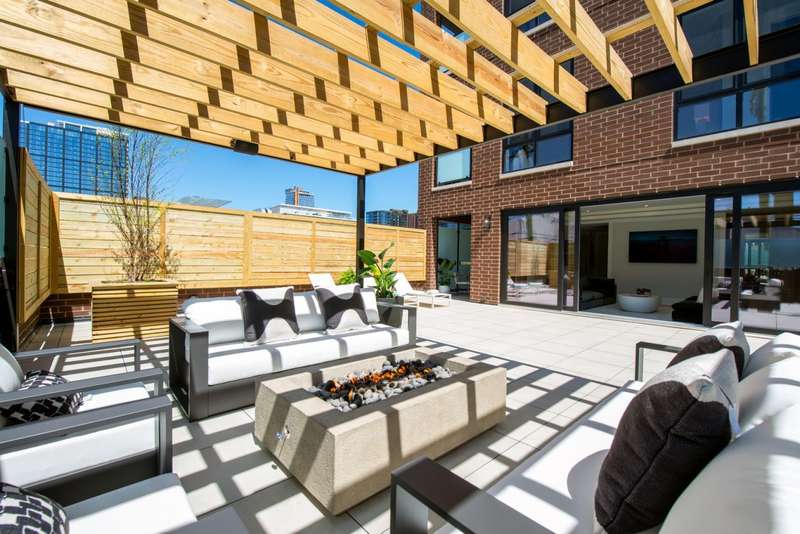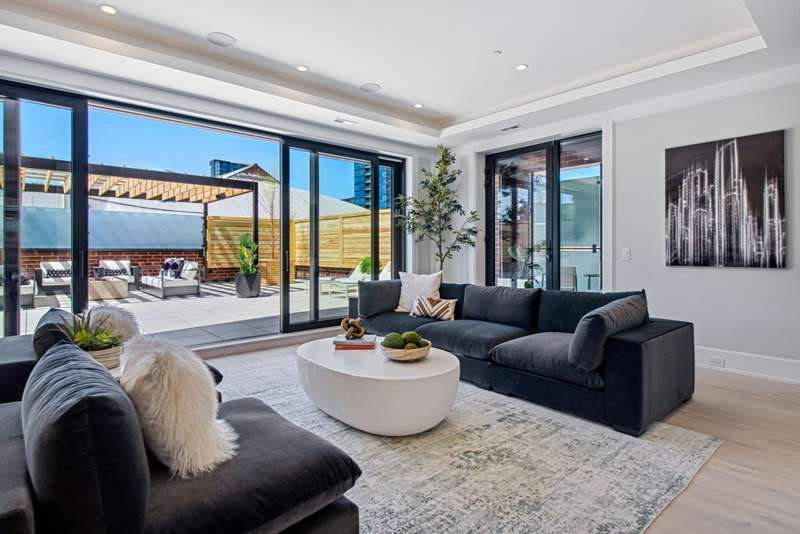 This stunning duplex-up features a massive 1200 sq. ft. walk-out terrace and an attached heated 2-car garage, all within an intimate 5-unit boutique elevator building in the heart of the West Loop. Built by the renowned PLD Homes, known for their exceptional design, timeless finishes and unmatched craftsmanship. This home offers high ceilings, floor-to-ceiling windows, wide-plank hardwood floors, and expensive millwork that create an open and airy atmosphere. The main floor spans a remarkable 35 feet wide-uncommon in any neighborhood or building! As you enter, you'll find a formal foyer leading to a spacious, well proportioned living area, with oversized sliding doors seamlessly connecting the indoor and outdoor. This is the best outdoor terrace in the city! Covered portion of the terrace, perfect for year-round grilling, a large pergola, and hookups for water, power, and speakers-ideal for entertaining or everyday living. This space flows effortlessly into the large kitchen and dining area. The chef's kitchen is a dream, featuring a massive island with plenty of seating, custom cabinetry, Thermador appliances, a herringbone backsplash, under-cabinet lighting, and custom - mitered countertops. Floor-to-ceiling windows fill the room with natural light. The dining area comfortably seats 10 and includes built-ins, a wet bar, tray ceiling with lighting, and a dedicated wine fridge column by Gaggenau. The primary bedroom is bathed in light from large windows looking over the terrace, allowing your own design of the view. Another private patio of the primary suite - perfect for a morning coffee or evening wine. The spa-quality bath boasts radiant heated floors, double vanities, an oversized mirror, sconce lighting, a rain shower with steam and bench, a separate water closet, and a soaking tub, set against a feature wall ready for your personal touch. This building is tucked away on the quiet, secluded Willard Court, just a one-block stretch. Yet, it's steps away from the vibrant shops, restaurants, dining at Randolph Street and all the convenience and entertainment that West Loop has to offer.