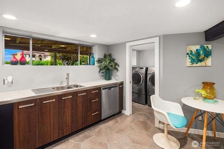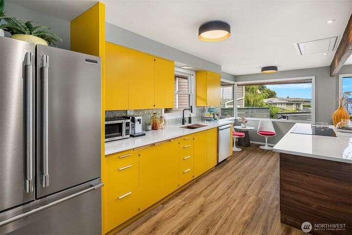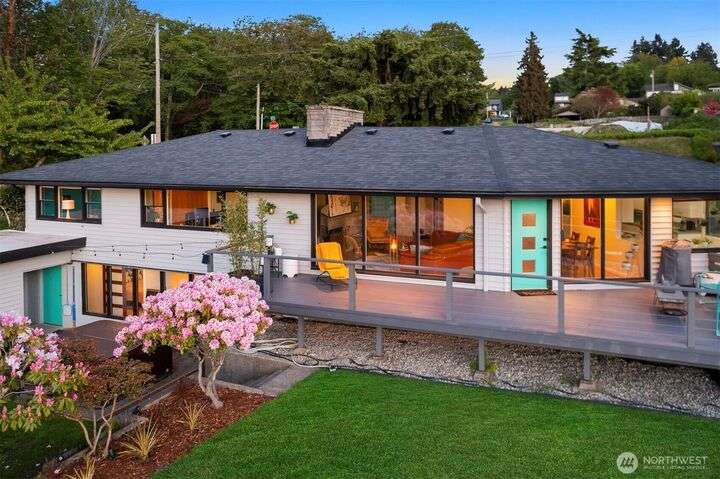 SELLER OFFERS 1 year RATE BUY DOWN! Experience stunning Puget Sound views from this beautifully updated Mid-Century Modern gem! Nestled on a spacious 12,000+ sqft lot, this 3,004 sqft Home offers 3 Bedrooms or convert to 4. Enjoy a brand-new designer Kitchen with all-new appliances and extra large Island, perfect for entertaining. The Lower level features a fully finished Mother-in-law Suite with its own Kitchen and private entrance—ideal for guests, multi-generational living, or rental income. Timeless architecture, and a prime location make this a rare opportunity in the Dash Point community. Right next door to Dash Point Park-400 acres of hiking and camping. Beach rights on private, neighborhood beach -steps away for summer fun!
