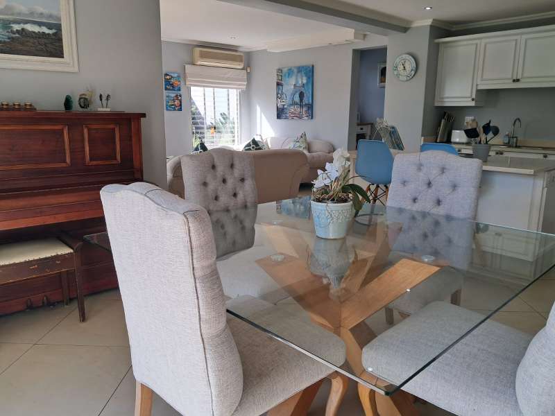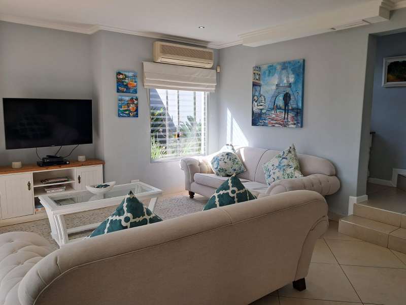 Experience light-filled, spacious indoor/outdoor living in this gorgeous double-storey townhouse nestled in the secure and sought after Simbithi Eco Estate in Ballito, KZN North Coast. This elegant home features four spacious bedrooms as well as a beautifully maintained garden, perfect for children and pets. NO CATS. The lower level features a spacious open-plan kitchen and small scullery, dining room, and lounge area flowing out onto the manicured garden and under cover outdoor patio. The patio has expansive views over the estate. There are two bedrooms on this level, both with direct garden access. The upper level features two spacious bedrooms, both bedrooms are ensuite and each has access to a wrap around balcony. The main bedroom boasts a full en suite bathroom and tranquil views. The entrance hall provides a welcoming, spacious feel and there is direct access from the garage. Located in a sectional title complex on the prestigious Simbithi Golf Course section of Simbithi Eco Estate, residents can enjoy access to extensive leisure facilities including Padel, tennis, squash, bowls and golf. The ideal home for an active and relaxed lifestyle. Book your viewing today!