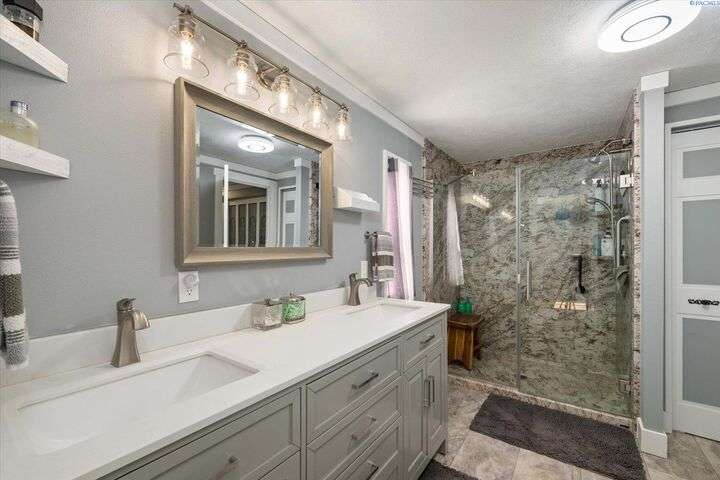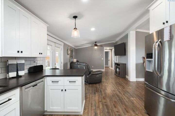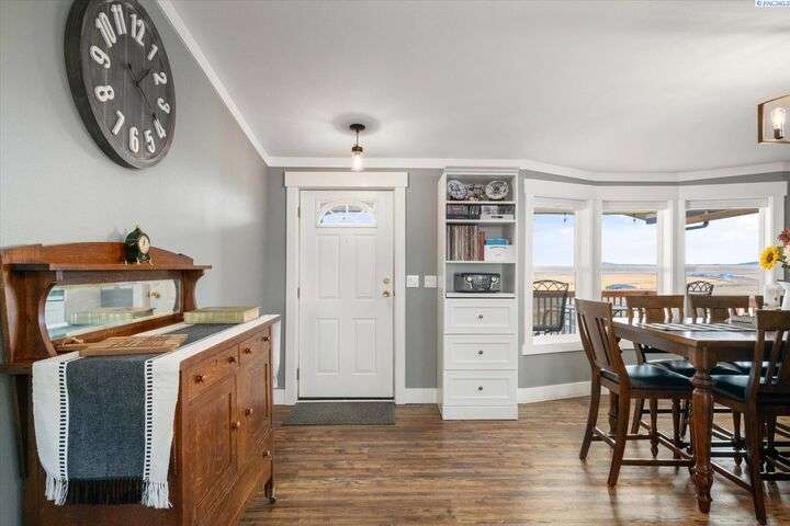 MLS# 287913 Welcome to your country home set on just over 5 acres with views of the Blue Mountains. This 3,558 sq ft manufactured home with basement was fully renovated in 2023. The spacious deck has been freshly stained and is ready for you to enjoy those fall morning sunrises. The roof was replaced in 2013 and HVAC in 2011. Solar panels have been installed on the property and have proven their cost savings benefit by affording you extremely low monthly electric bills. A 20'x36' shop is outfitted with electrical, including RV hookup and is perfect for parking your vehicles, toys or tools! The main level offers a split bedroom design with a generous sized primary bedroom with en-suite. Enjoy hosting Thanksgiving dinner in your dining room while taking in the sweeping views. Underground sprinklers are installed down below making it possible for a small green space. Water is provided via community well and is metered separately. A Kinetico water filtration system is installed and stays with the house. This truly is a treasured gem and it's ready for you to call home. Call your favorite Realtor for a private tour.