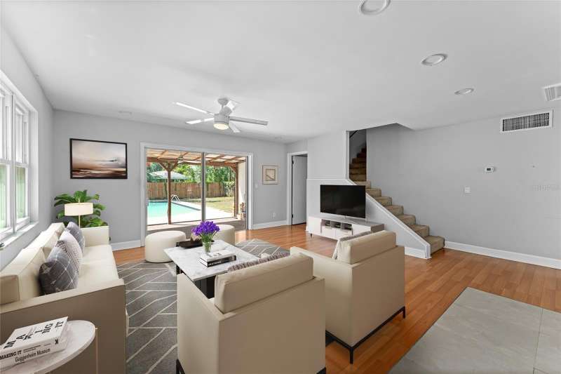 Under contract-accepting backup offers. One or more photo(s) has been virtually staged. Welcome to this spacious and well maintained 4 bedroom, 2 bath pool home with an updated kitchen located in highly sought-after Northeast St. Petersburg! Boasting a thoughtful two-story layout, this residence features a desirable first-floor master suite offering privacy and convenience, while three additional bedrooms and a full bath are situated upstairs – ideal for family, guests, or a home office setup. Step into the heart of the home – the updated kitchen – complete with a center island, modern cabinetry, and ample counter space, perfect for cooking, entertaining, or gathering with loved ones. The open-concept design flows seamlessly into the living and dining areas, creating a warm and inviting atmosphere throughout. Situated just off of 1st Street North which features The North Bay Trail. The southern end begins in downtown St. Petersburg with an easy connection to the scenic 50-mile Fred Marquis Pinellas Trail at Bay Shore Drive SE. From there, the trail heads north along Tampa Bay, offering enjoyable views of the water, busy marinas, palm trees and beaches. The trail turns inland at Coffeepot Bayou, which is lined with beautiful waterfront homes in the Old Northeast neighborhood. A busy commercial area follows as the trail closely parallels 1st Street NE. After crossing a pedestrian bridge at 79th Avenue NE, the trail turns back east and head up to 83rd Avenue North. Enjoy Florida living at its best with your own private pool, ideal for relaxing, hosting weekend barbecues, or cooling off during the summer months. The covered lanai with ceiling fan provides shaded space to cool off after your swim. A two-car garage adds plenty of storage and convenience, and the low-maintenance yard allows for more time spent enjoying your home. This property remained high and dry with no flooding during last year’s hurricanes, offering peace of mind for years to come. Just minutes to vibrant downtown St. Pete, parks, schools, shopping, and the beautiful Gulf beaches – this is the perfect place to call home! Don't miss your chance to own this gem in one of St. Pete's most desirable neighborhoods!