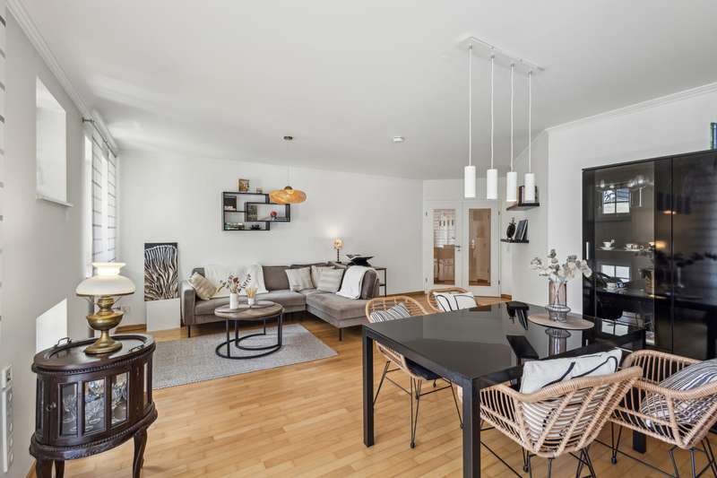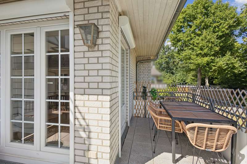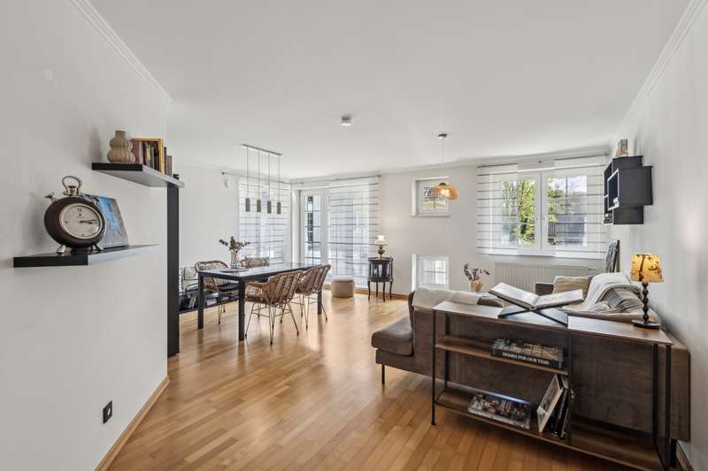 This very well-kept, quietly located condominium is located on the 1st floor of a residential complex with a total of only 6 apartments in the building. The stairwell has dark granite flooring. This apartment is also easily accessible via the elevator. After entering through the front door, you find yourself in the "L" shaped hallway, from which all rooms lead off. Due to the east and west orientation of the apartment, it is very bright. Straight ahead from the hallway, a glazed double door leads to the spacious living room with lots of windows and two doors that open onto the balcony, also in an "L" shape, from which you have a beautiful view of the garden. Directly to the left of the entrance area is a small storage room. Continuing along the hallway, there is another room behind it, which is currently used as a study. Further to the left is the bedroom, which has a balcony door and a French balcony, among other things. At the end of the hallway is the bathroom with window, separate shower, bathtub, washbasin, WC and space for a washing machine and dryer. At the end of the hallway, flush right, is the kitchen with a fitted kitchen, including all electrical appliances. If you enter the hallway flush right from the entrance area, you will find the interior guest WC on the right-hand side. At the end is another room that currently serves as a children's room. The attic floor is where each apartment has its own large storage room, as the house does not have a cellar. The boiler room is also located there, as are the hot water tanks for each apartment. The apartment also has a single garage at the front. The building also has an external, lockable bicycle shed. Next to it are the storage areas for the various garbage cans. There is also a children's playground on the property. The apartment is currently let until June 2027. The tenants plan to move out in mid-2027. The current monthly net cold rent is € 1,195.00, plus € 60.00 for the garage, making a total of € 1,255.00 per month, or an annual net cold rent of € 15,060.00.