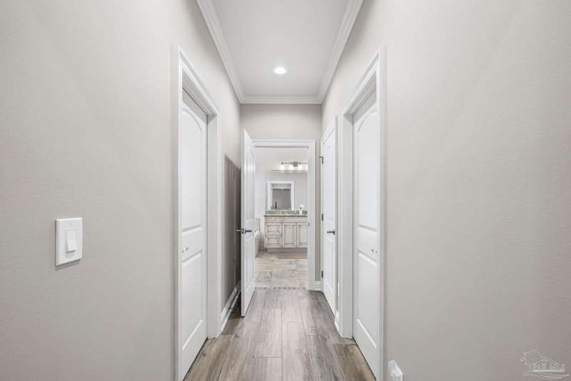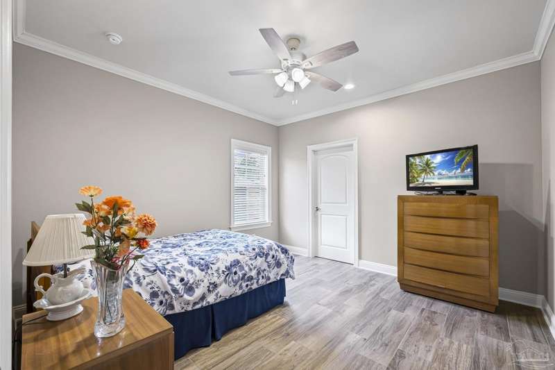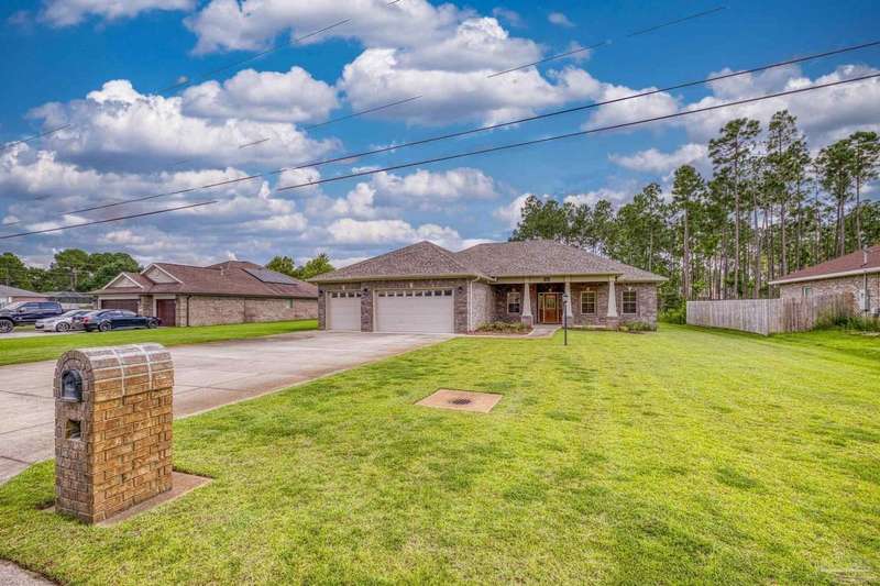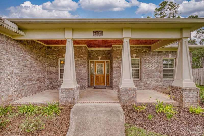 Imagine a home designed for the discerning homeowner, with high-end features and a layout that flows effortlessly for both everyday living and grand entertaining. This residence is a masterpiece of design, with attention to detail evident in every corner. Upon entry - notice the wood ceiling on the porch - then you're greeted by a leaded glass front door with transom windows, stunning foyer, wood look plank tile flooring throughout, high ceilings, crown molding and cased windows and doors, setting a tone of elegance that continues throughout the home. The open-concept living area is the heart of the home, featuring a gourmet kitchen with a large island, top-of-the-line stainless appliances, and custom cabinetry. The living room, with its oversized cased windows, is a bright and welcoming space, perfect for relaxing or gathering with guests. The main suite is a private retreat, complete with a spa-like bathroom featuring a soaking tub, a zero-entry walk-in tile shower, and dual vanities. The tri-split floor plan provides privacy and functionality, with additional bedrooms and a dedicated office or flex space which could be a 5th bedroom if so desired. A secluded third bedroom with large closet is an ideal space for guests or a private sanctuary. The home's exterior is just as impressive as the interior. Situated on a large, beautifully landscaped lot, the property features a covered back porch with wood ceiling, perfect for enjoying the Florida weather, gutters and impact glass windows. Whether you envision a private pool, an outdoor kitchen, or a lush garden, the generous half-acre lot provides ample space for creating your own personal oasis. Beyond the home itself, residents of Holley By The Sea enjoy access to a world-class recreational center. The amenities include a private beach on Santa Rosa Sound with a fishing pier, multiple swimming pools, tennis courts, pickleball, a state-of-the-art gym, a community center and boat launch on East Bay.