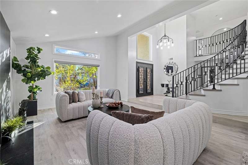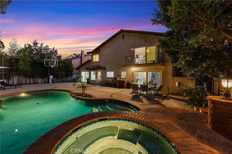 Dreaming of Living in Porter Ranch? This 3-Bedroom Pool Home Has It All! If you’ve been considering a move to Porter Ranch, this is the home you’ve been waiting for. Located in one of the most sought-after neighborhoods, this updated Porter Ranch home for sale offers over 2,646 sq. ft. of open living space, a sparkling pool, spa, large backyard, and mountain views for both comfort and style. Walk inside through the double wrought iron doors, and you will be greeted by high-end designer wrought iron staircases—a true showstopper. To your right, high ceilings allow an abundance of light to brighten the living room, which leads to the formal dining room. The custom fireplace will not go unnoticed, and the picture-perfect window overlooks the lush landscaping. The open floor plan connects to a formal dining area and a beautifully updated kitchen featuring a large center island, custom backsplash, stainless steel appliances, and an eat-in area. The adjacent family room boasts a custom stone fireplace that complements the overall house design, adding an elegant touch.The huge remodeled kitchen showcases quartz countertops, an induction cooktop, custom cabinetry and backsplash, stainless steel Bosch appliances, a beverage center with a small U-line refrigerated cooler, an overhead cooking exhaust fan, an eat-in area, a walk-in pantry, and a breakfast bar. Heading to the second floor, you’ll find an extravagant master suite and a remodeled private bath with a walk-in closet, dual sinks, and a separate soaking tub, balcony enjoying the views. Bathroom upgrades include newer sinks, tubs, tile, and flooring. Your backyard features a pool and spa with a newer pool heater and variable-speed filter, a built-in BBQ, an adjustable-height basketball hoop, fruit trees, and a garden. Additional amenities include hardwood flooring, a split system HVAC with separate heat/cooling Mitsubishi units upstairs, a whole-house attic fan, and insulated garage doors. Located just minutes from hiking trails, parks, and The Vineyards at Porter Ranch, and within the boundaries of top-rated schools including Castlebay Lane Elementary, Frost Middle School, and the award-winning Granada Hills Charter High School, this is your chance to experience the best of living in Porter Ranch.