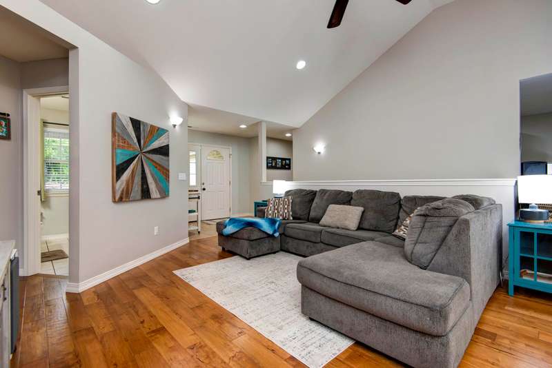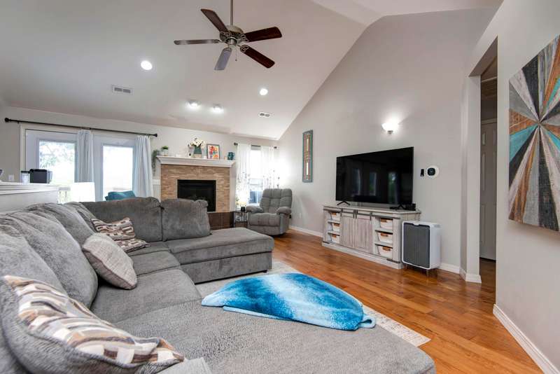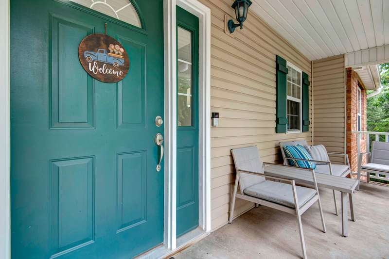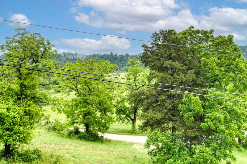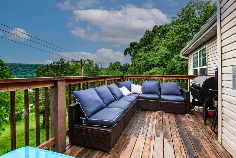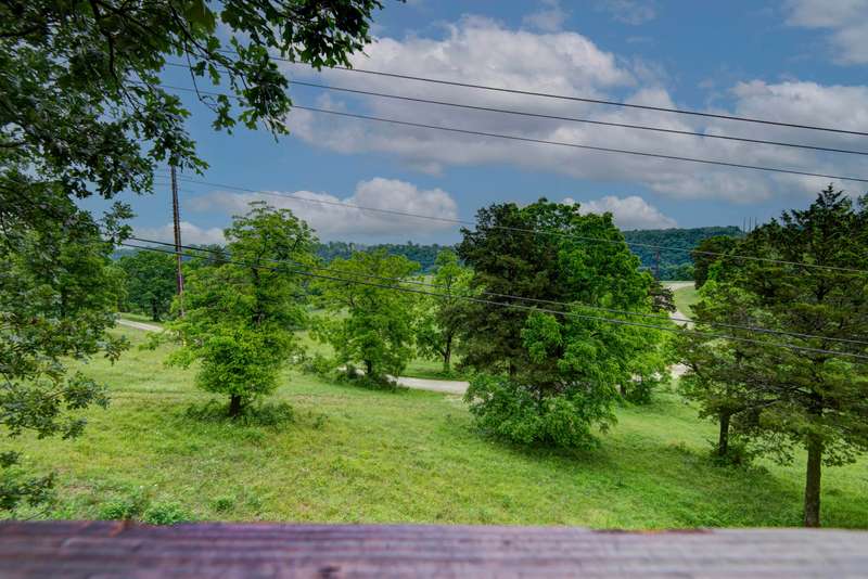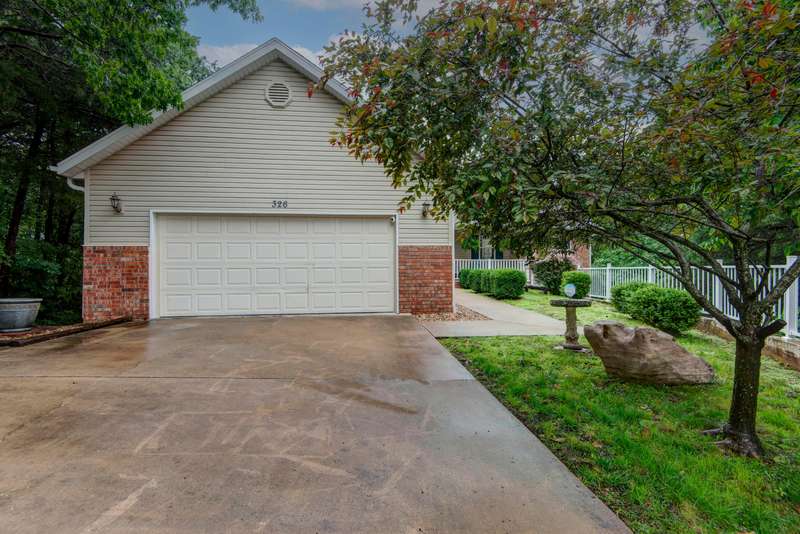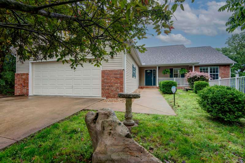 Welcome to Country Bluff Estates, Branson's premier in-town, executive community and the very definition of 'City Close and Country Quiet!'Situated on a beautifully wooded 1/2 acre lot, this home looks directly across at the charming campus of College of the Ozarks and the historical Lyons Memorial Library. If you go out on the deck on the hour you can hear the bells of the CofO chapel playing, 'Westminster Chimes.' It's truly lovely. The land behind the house is also owned by the college so you can enjoy the peaceful bucolic pleasure of cows dotting the hillside.This quality home is located on a quiet mini-culdesac on a lovely wooded lot with a flat driveway, flat entrance, and flat front yard. Beside the house is a wonderful woodsy area with a fire pit and easy access from the downstairs deck. The other side of the house is just woods too so it feels really private.Everything you need for daily living is on the main level: A spacious living room with vaulted ceilings, hand scraped floors, a charming fireplace, a roomy kitchen with gorgeous and stylishly on-trend wood cabinets, granite countertops with a handy bar and stainless appliances, an eat-in kitchen nook with that gorgeous tree-house view, a large laundry room with awesome pantry, a great master bedroom with en-suite bathroom and a big walk-in closet, and two nicely sized guest rooms and spacious guest bath. Downstairs is hardly even a downstairs because it's mostly all above grade with plenty of windows and light. There is a terrific family room, a fantastic storage room that could double as a safe room for storms, an additional bedroom and bathroom, and a deck that walks right down to the fenced yard.The crawlspace is clean as a whistle and dry as a bone! It's got a new vapor barrier and a plumbed-in dehumidifier. A NEW 80 gallon hot water heater means no more fighting over hot water and deciding whether to shower or wash clothes. The back deck is also NEW! And the $2000 security system pack