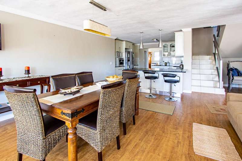 When Security, Privacy and Location is important, but you also want some space, then this house is for you. This beautiful house is located in Port Owen in a quiet Cull de sac, and close to the Marina. From the balconies upstairs you have a lovely view over the marina and surroundings. Trellidoor gates at all doors, and high-quality burglar bars at all windows, together with an alarm system and CCTV cameras, will all give you peace of mind. There are lots of parking space behind the gates, for your boat and visitors and 2 lock up garages. The bedrooms are spacious, easily fit a King Size bed. All 3 bedrooms has an ensuite bathroom and walk in closet. The 2 bedrooms upstairs opens up to a balcony while the main bedroom downstairs walk out on the patio and swimming pool area. Upstairs is also a small pyjama lounge and there is a fireplace/build in braai should you choose an evening in. The living area downstairs is all open plan with a lovely patio with braai. Most of the yard is paved and there are only water-wise plants to ensure you have enough time to enjoy, and less for maintenance. The living area flows into the dining area and modern kitchen, fitted with a gas stove, granite tops and Bosch coffee machine. There is a pantry around the corner and a scullery opening into the backyard and also adjacent to the double automated garage. The house is fully fenced, has an alarm system and CCTV camera. There is a Solar-Battery-invertor system to make life easier when Eskom is not co-operating. The house was built to accommodate your family and guests and provide comfort to all. Some of the furniture and appliances are included. This is a house that you have to view to appreciate what it offers. Give me a call to make a viewing appointment, or if you want any more information.