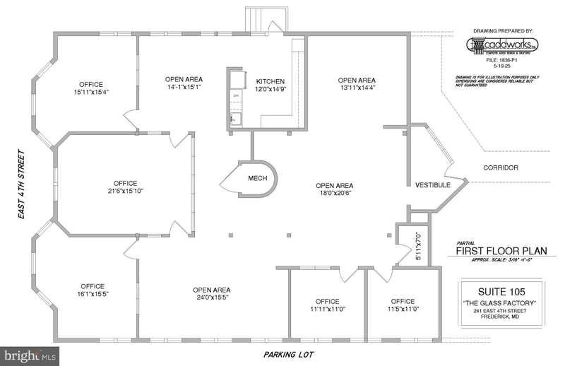 Beautifully Decorated 2,848 SF Office / Medical Space (No Retail) in Historic Downtown Frederick. Five Offices, Conference Room, Three Large Open Cubicle Areas, Large Full Kitchen. Located on East Street. Multiple Restrooms and Breakroom in Common Area. Also, For Lease. 44,840 SF Building on 1.49 Acres (64,620 SF). DB Zoning.