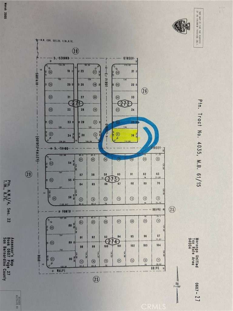 Welcome to an Oasis paradise in world renowned Joshua Tree in California. This Lot is 10028 square feet of heaven, build a weekend getaway, maybe add some pickleball courts or possibly Airbnb. Close by is a popular off-road destination, minutes from downtown Joshua Tree and of Course The Joshua Tree National Park, with world class Hiking, Camping, Off Road adventures and not to mention amazing Star gazing with clear evening skies. What took Millions of years of winds and torrential rains to form, you can own a piece of history now. What are you waiting for. APN 0607-272-01-0000 Contact San Bernardino planning Dept for building and use, same with verifying utilities. Property profile indicates Joshua Tree as address it is lot 36, verifying weather its 1st or Third .