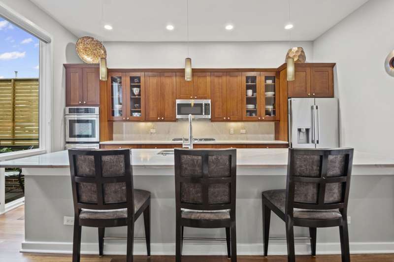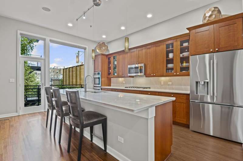 Over 3500 sq. ft. townhome in beautiful condition with 11 ft. ceilings, floor to ceiling windows located in Lincoln Park gated community, Bosworth Place. First floor has a huge family room which opens up to a stunning 450ft private patio, full bath and laundry room. Second floor has a gorgeous living room flooded with natural light, wood burning fireplace, newly refinished floors, dining room with built in, stylish powder room, gourmet kitchen and great room. Kitchen has a huge island with quartzite countertops and backsplash, high quality cabinetry, new appliances, balcony overlooking patio and opens up to the great room. Third floor has an expansive primary suite and 2 spacious bedrooms. Primary suite has spa like bath with a soaking tub, walk in shower and dual vanity. With a 2 car attached garage this home lives like a single family and in a in a perfect Lincoln Park location