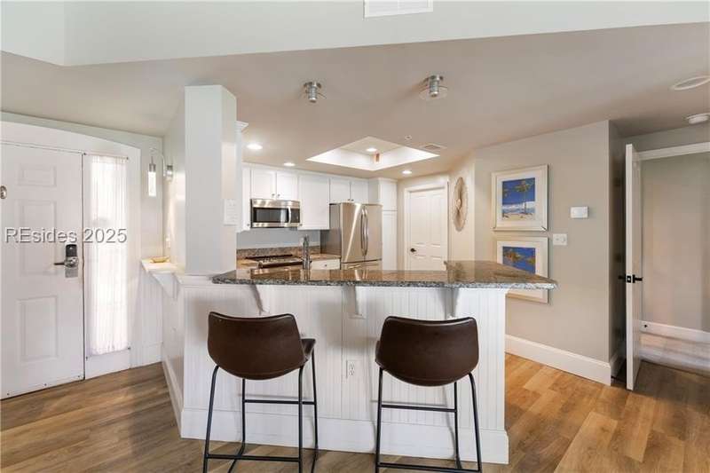 Experience luxurious oceanfront living in this stunningly renovated 2-bedroom, 2-bath condo at Hampton Place.Wake up to breathtaking ocean views from your private terrace, perfect for savoring morning coffee or watching the sunrise.This open-concept condo features a modern kitchen, a cozy electric fireplace, and elegant furnishings throughout.The spa-inspired bathroom offers a serene natural stone wall and a deep soaking tub for ultimate relaxation.With a 2024 HVAC system, this home is move-in ready. Enjoy resort-style amenities, including pools, a fitness center and access to all the world-class offerings of Palmetto Dunes Oceanfront Resort.