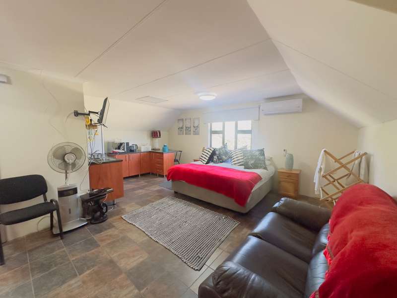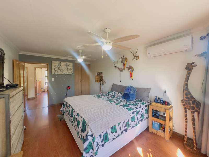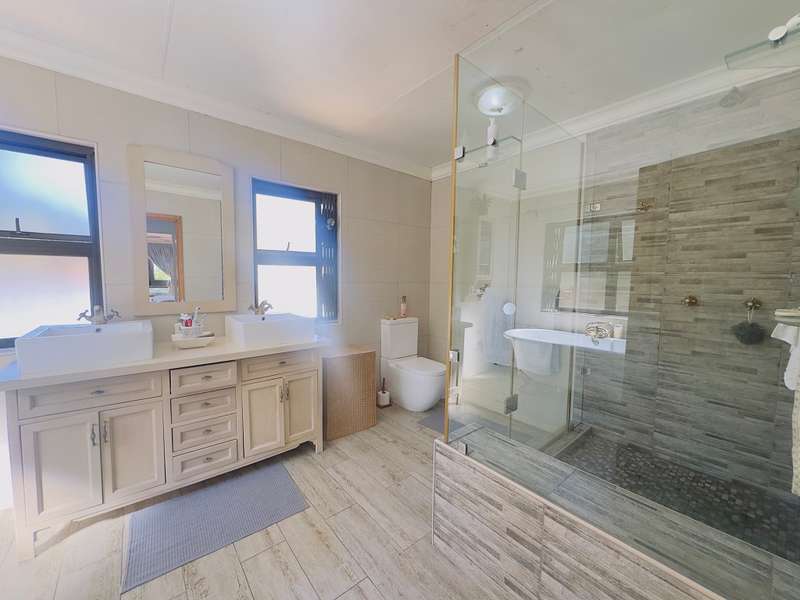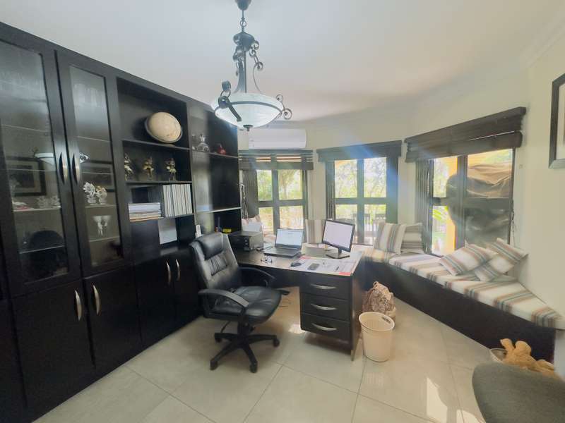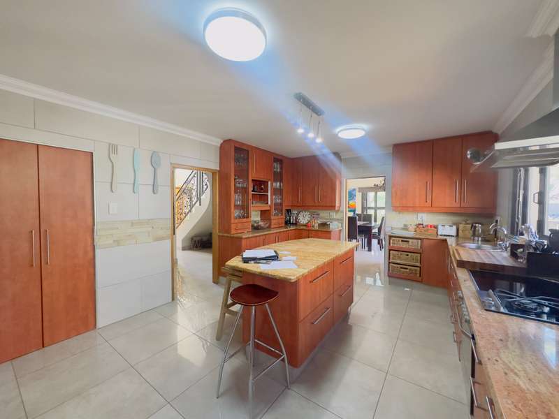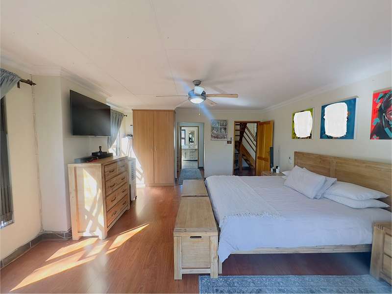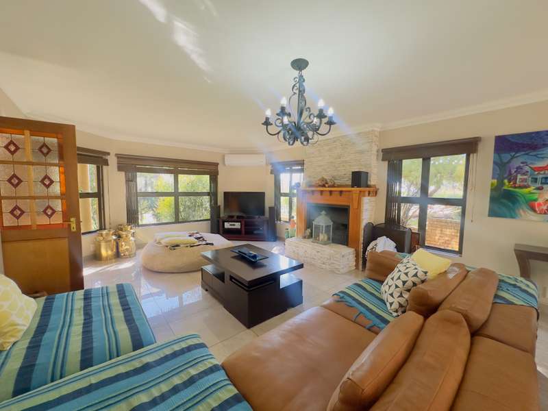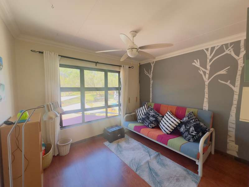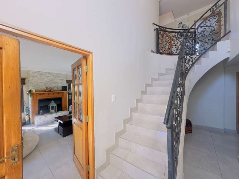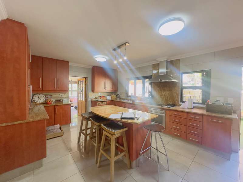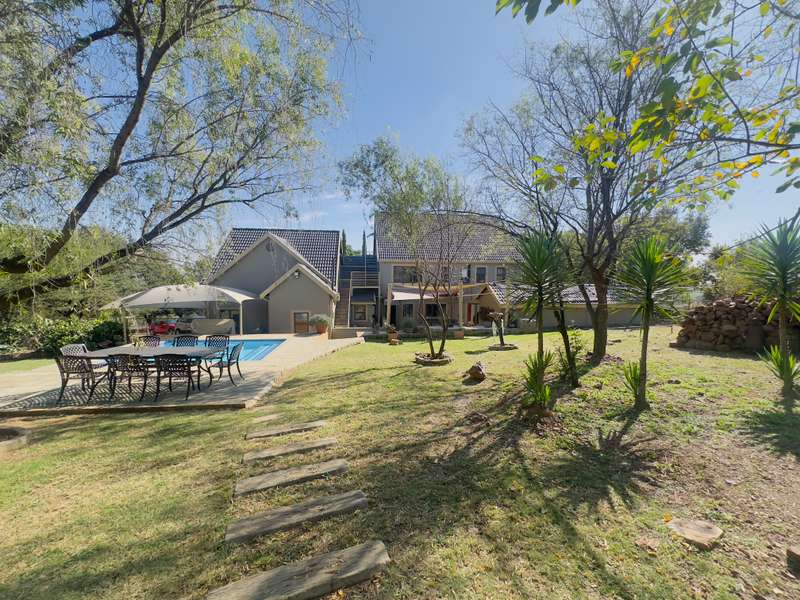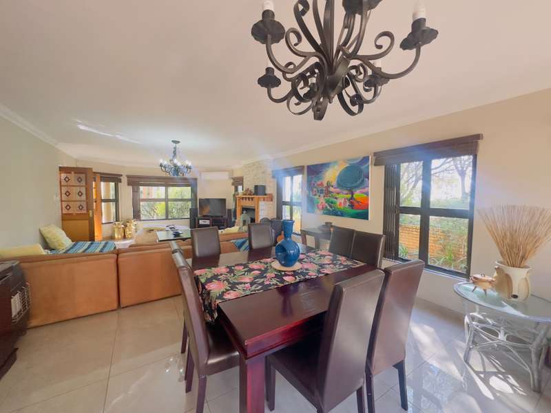 Thus spacious 5-Bedroom Family Home with Flatlet, Eco-Friendly Features & Excellent Security is nestled on a lush 11 600 sqm plot surrounded by mature trees and a wildlife environment, this expansive family home combines comfort, convenience, and sustainability. Ideal for modern living, it offers 5 bedrooms, 4.5 bathrooms, and 3 garages with additional parking for up to 4 vehicles. Whether you're working from home in the dedicated study or relaxing by the fireplace in the inviting family room, this home caters to every lifestyle need. The open-plan dining and entertainment area seamlessly connects to a modern kitchen, featuring granite countertops, a gas stove, pantry, and scullery—perfect for entertaining and everyday use. Upstairs, you'll find 3 air-conditioned bedrooms, 2 bathrooms, and a versatile loft space ideal for a playroom, studio, or extra lounge. Additional highlights include: • Self-contained flatlet – great for guests or rental income • Staff quarters • Swimming pool • Beautiful garden • Fibre internet connectivity • Solar panels, solar geyser, and inverter system for energy efficiency • Borehole and water tanks for reliable water supply • Secure estate living This home is a rare find, offering the perfect balance of family comfort, work-from-home space, and eco-conscious features in a secure, community-focused estate.