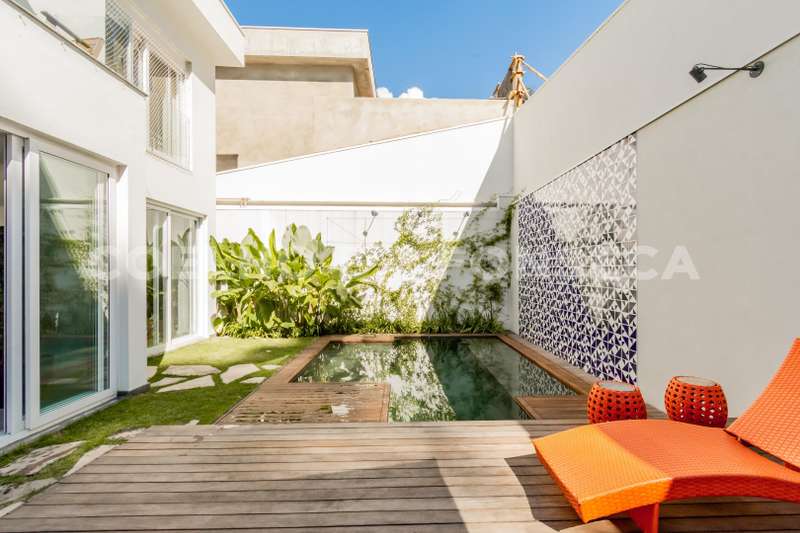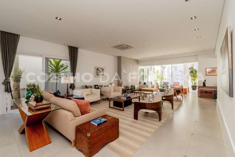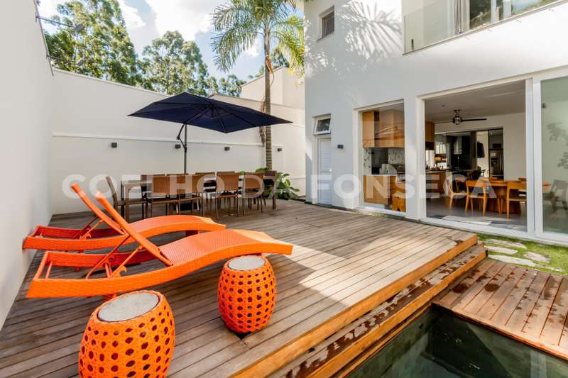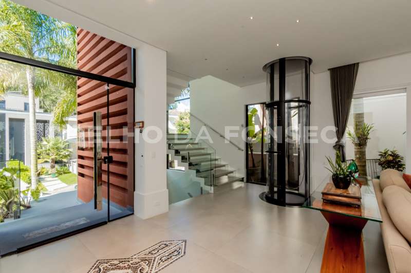 Casa no condomínio TAMBORÉ XI, com 505m² área construída, 4 dormitório(s), 4 suíte(s), 4 vaga(s), 6 banheiro(s), piscina, sauna, mobiliado (a), rua sem saída, ar condicionado, dep. de empregados, reformado (a), elevador, aquecedor solar, pé direito duplo.