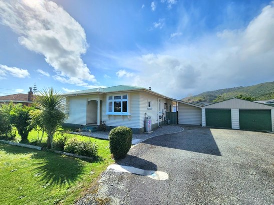 Well-presented three-bedroom home with generous double bedrooms, two featuring built-in wardrobes. The main bathroom includes a shower, vanity, and toilet, with a separate laundry and additional toilet for convenience. Open-plan kitchen, dining, and living area flows to the landscaped back lawn. Comfort is ensured with a multi-fuel fire, heat pump, and insulation in the ceiling and underfloor. Exterior features weatherboard cladding, concrete ring foundation, and a mix of timber and aluminium joinery. Gas hot water and separated services. Includes a double garage with potential for guest accommodation, glasshouse, and a tidy section in a central location.