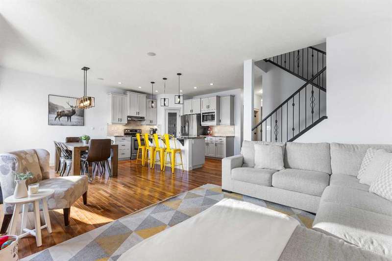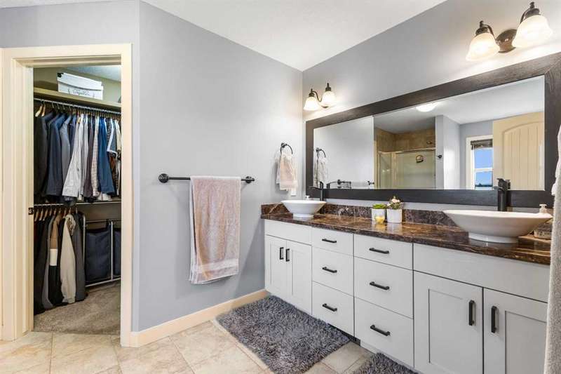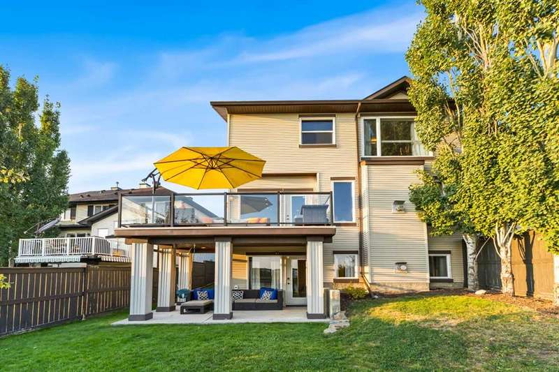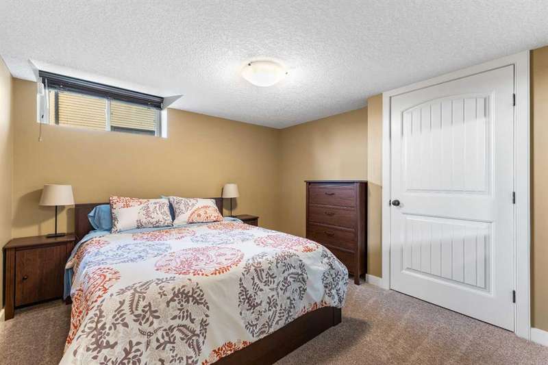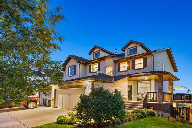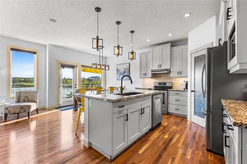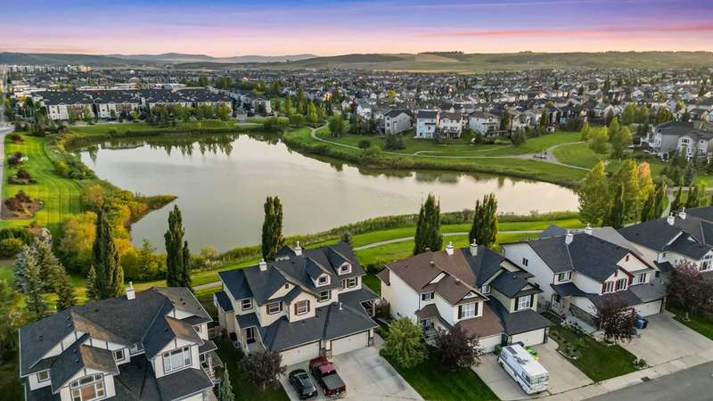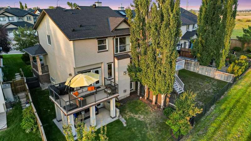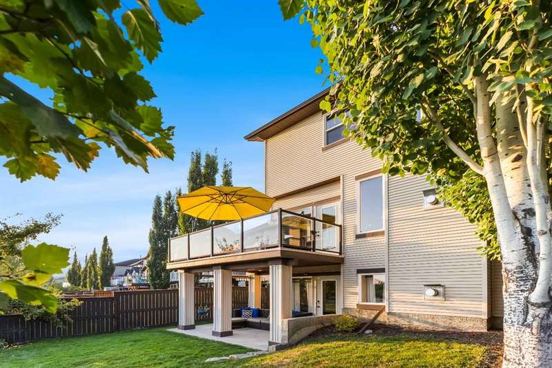 Welcome to 444 Silverado Range Place SW, a stunning family home set on a quiet cul-de-sac in the heart of Silverado. The front porch makes an immediate impression, opening to 9-foot ceilings, walnut hardwood floors, and a bright front office with French doors. At the heart of the main level, a custom travertine fireplace adds character, while oversized windows capture sweeping views of Silverado’s most scenic green space. The kitchen is both functional and elegant, featuring granite countertops, a large island, corner pantry, new appliances, and under-cabinet lighting. The dining area opens to an oversized patio with glass panel railing, a convenient BBQ nook tucked around the corner, and unobstructed south-facing backyard views. Upstairs, teardrop wrought iron railing and plush carpet lead you to a comfortable family room filled with natural light. Two spacious bedrooms, each with large closets, provide ample room for family or guests. The primary suite is a true retreat, featuring a walk-in closet and a spa-inspired en-suite with an oversized soaker tub, a separate shower, a private toilet room, and dual vessel vanity sinks—all while capturing the most spectacular views of “Silverado Pond” right from your bedroom. The fully developed walkout basement continues the tour with upgraded finishings, a second gas fireplace, an additional bedroom, bathroom, and direct access to the landscaped yard, complete with a mature pear tree and irrigation system. This home is filled with thoughtful upgrades, including custom Hunter Douglas blinds, designer light fixtures, a heated garage with epoxy flooring, central A/C, central vac, dual-zone climate control with a separate furnace for the basement, a water softener, and fresh paint throughout. A new roof and siding (2023) and a hot water tank (2022) provide peace of mind for years to come. Backing directly onto a green space with parks, pathways, and one of Silverado’s most picturesque ponds, this home combines comfort, craftsmanship, and truly an unbeatable location.