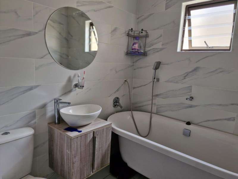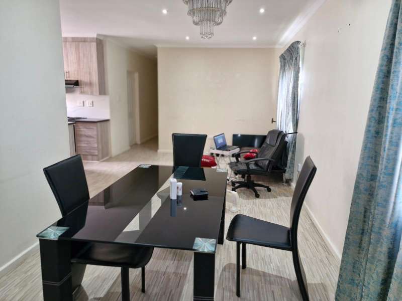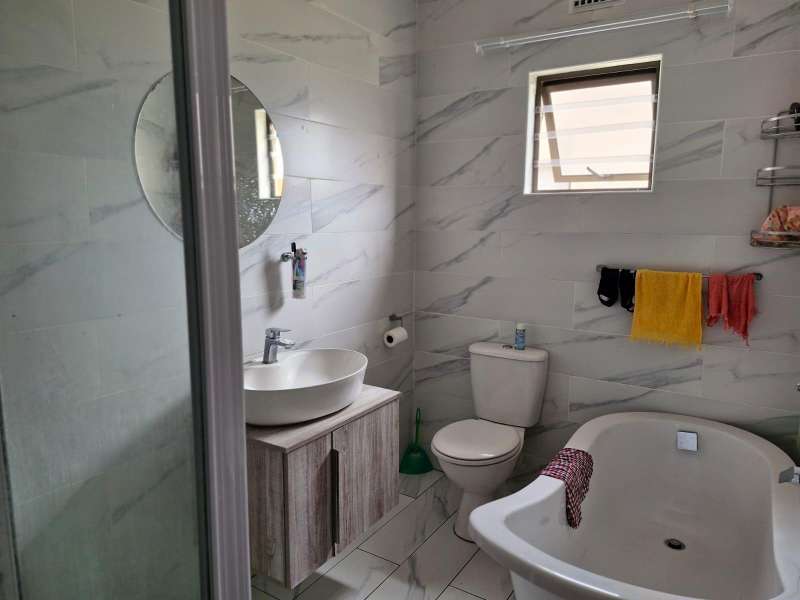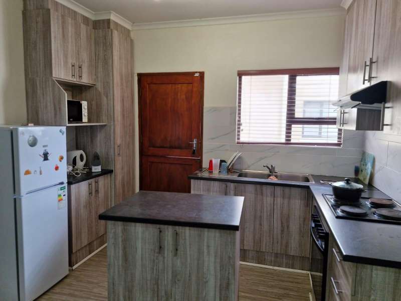 Discover your perfect starter home nestled in a peaceful eco estate near the sea, offering a harmonious blend of modern living and natural surroundings. This neat and well-maintained home features 3 comfortably sized bedrooms and 2 bathrooms, including a stylish main en-suite. The open-plan layout seamlessly connects the lounge, dining area, and a contemporary kitchen, complete with built-in hob and oven. The lounge boasts beautiful light fittings, while the entire home is tastefully tiled throughout for easy maintenance. Additional features include a single garage with a remote-controlled door and a small garden area at the back, perfect for adding a personal touch of greenery. Conveniently located near the IDZ and the airport, this property combines modern comforts with an excellent location. Ideal for first-time buyers or those seeking a tranquil coastal lifestyle!