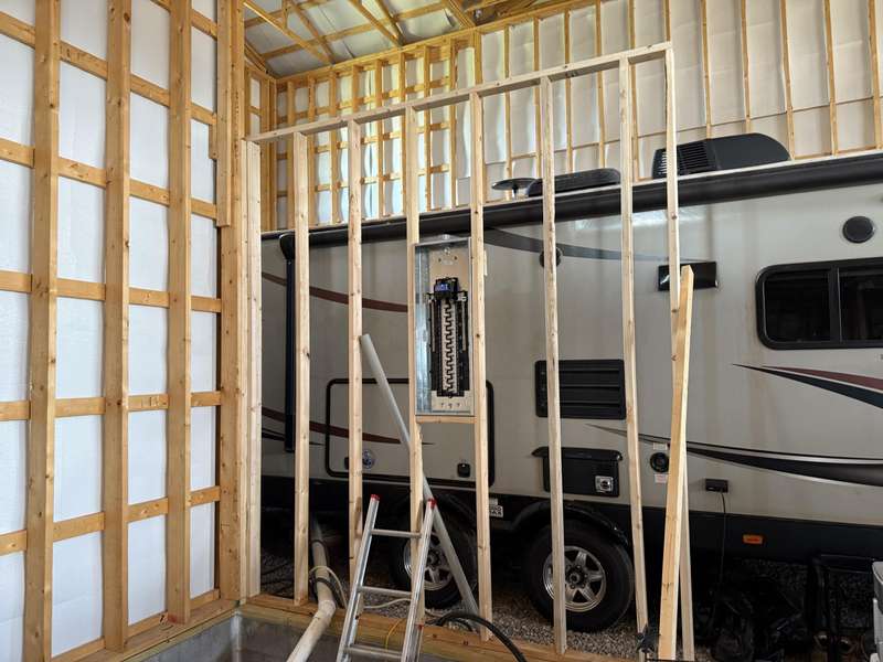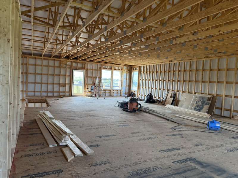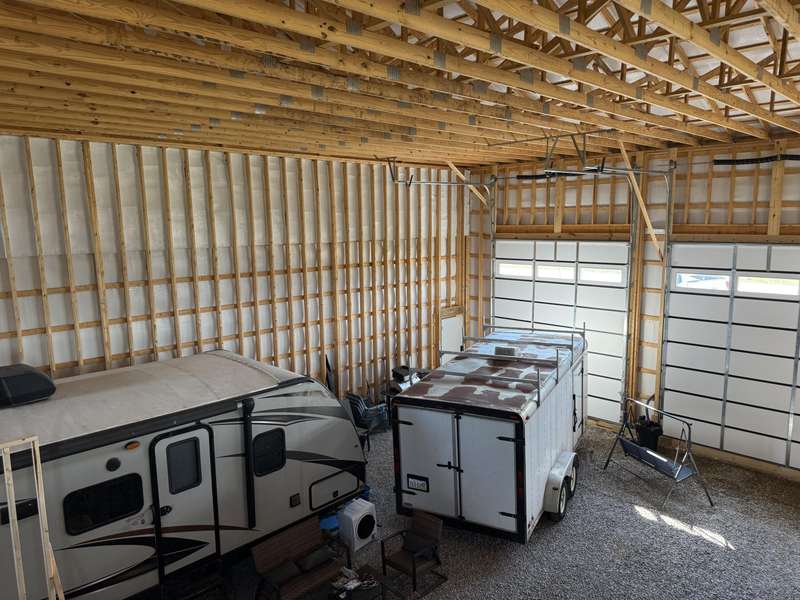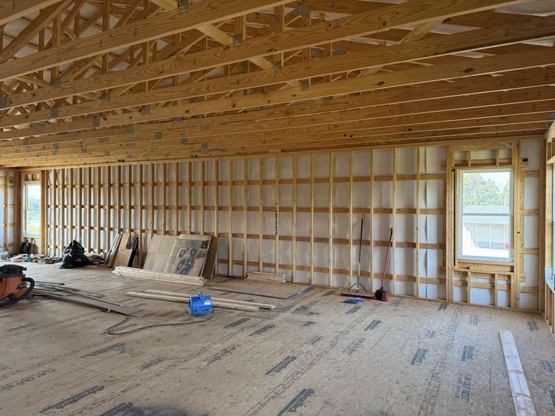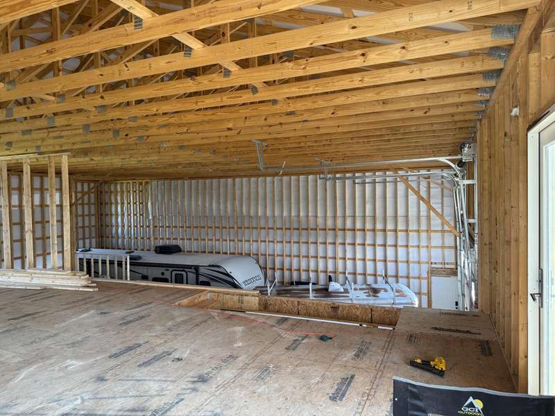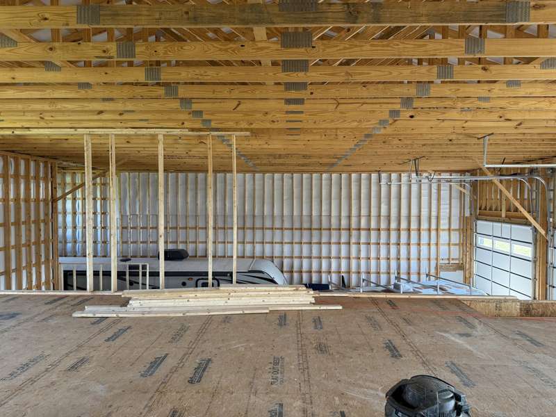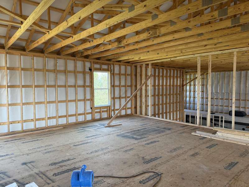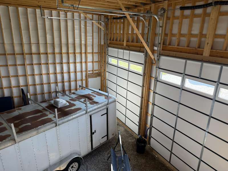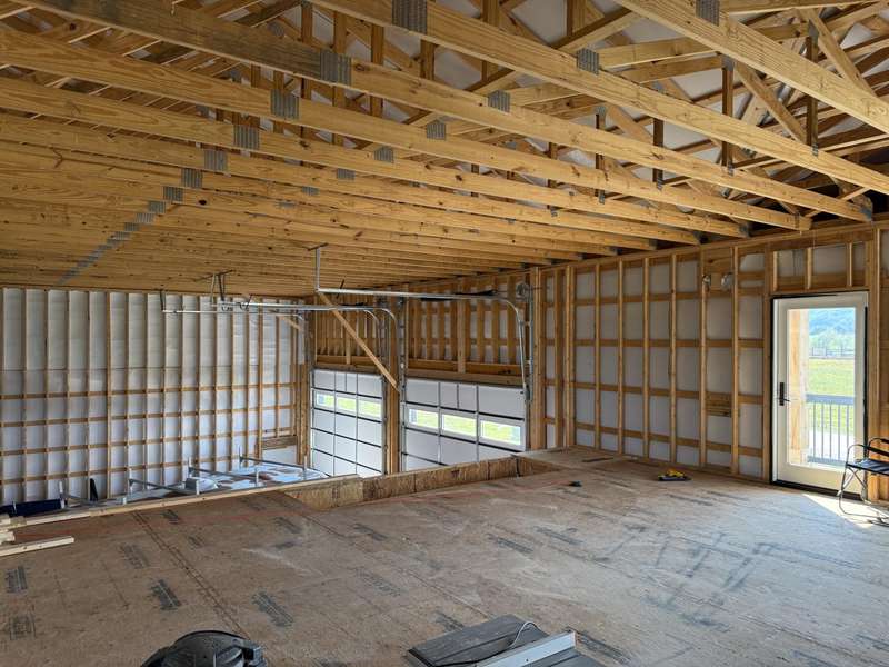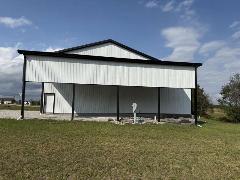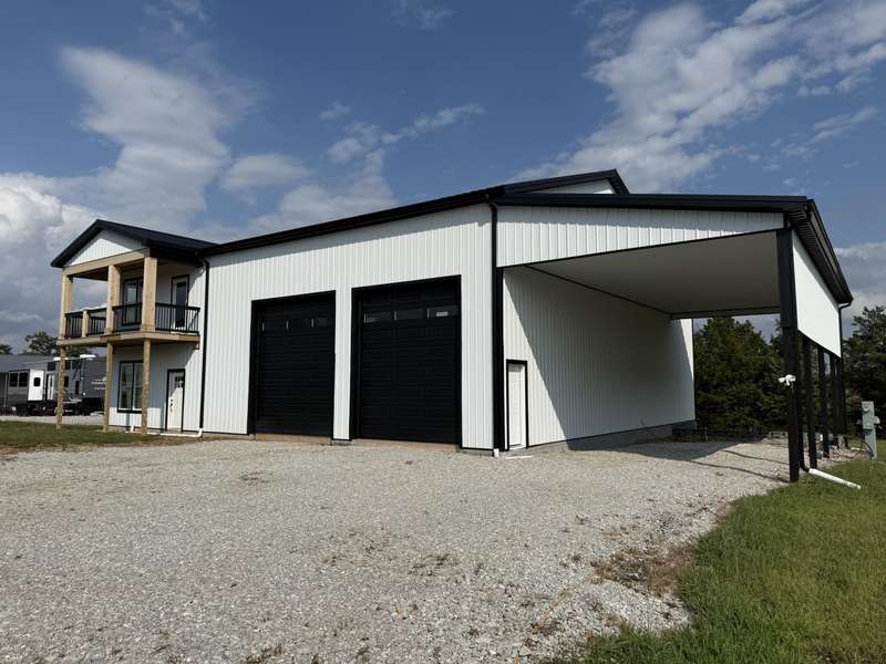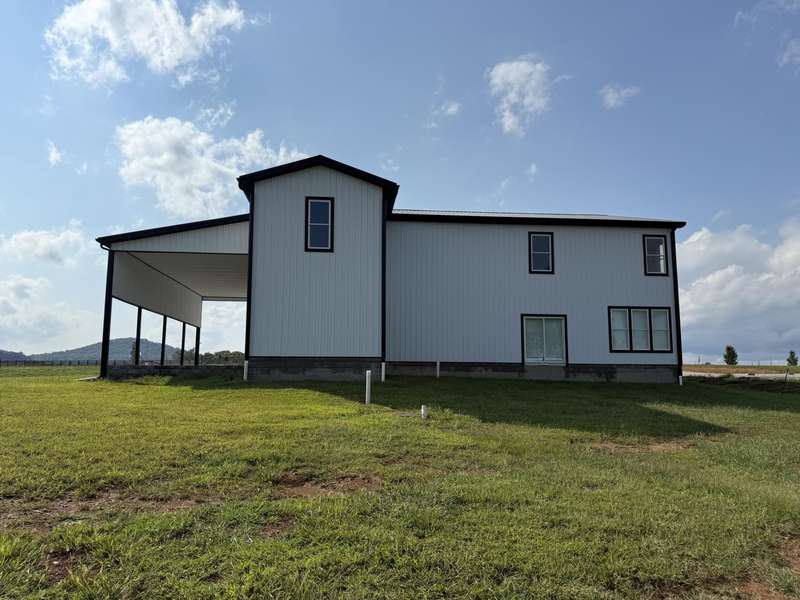 Unfinished barn-style home just 3 miles from Conley Bottom Marina. This property offers approx. 3,000 sq. ft. of living space ready to be finished to your specifications. The garage area features 20 ft. ceilings, two 12'x14' doors, and 60 ft. depth, large enough to accommodate boats, campers, or RVs of any size. Additional features include full RV hookup and a 10x10 storm shelter. Owner is willing to complete the living space for an additional cost.