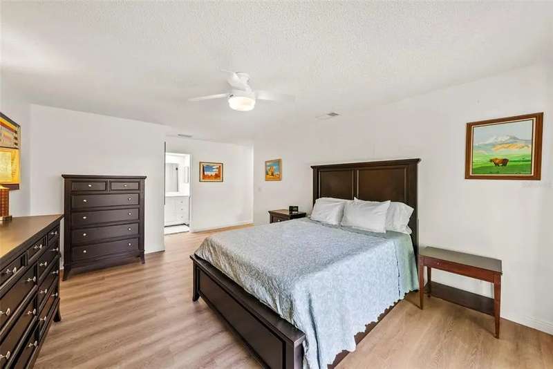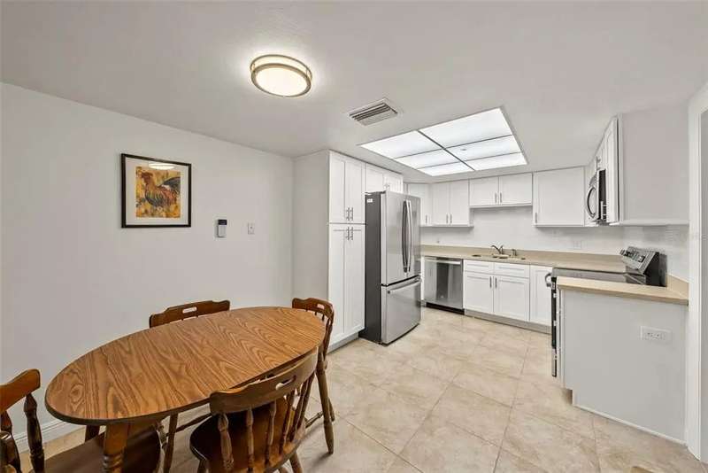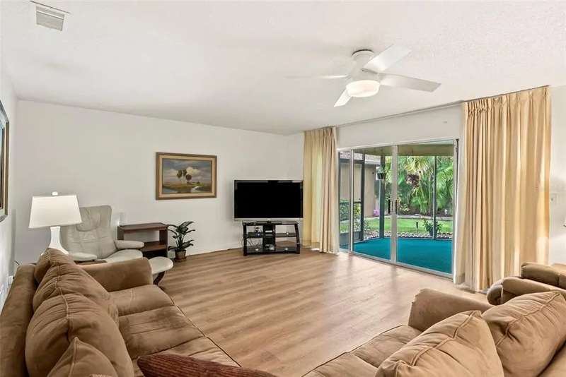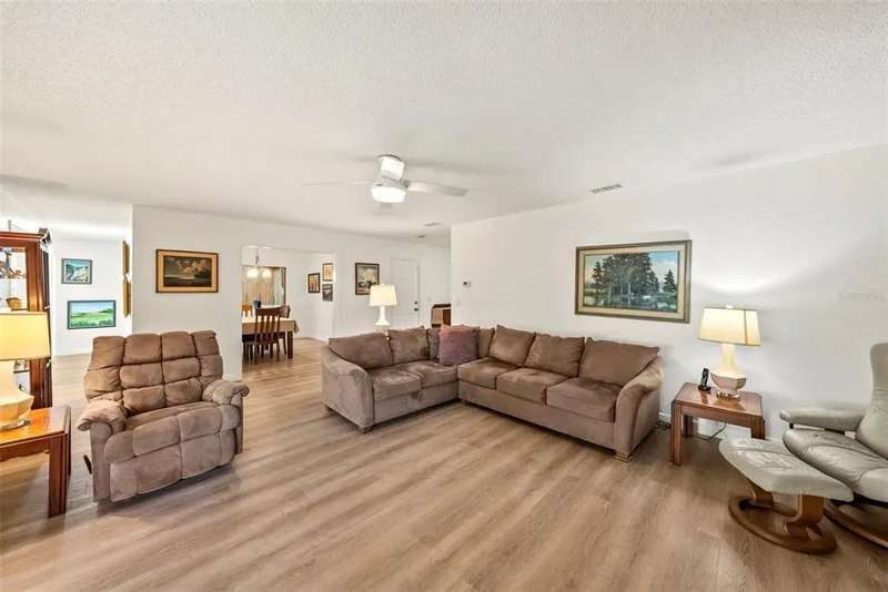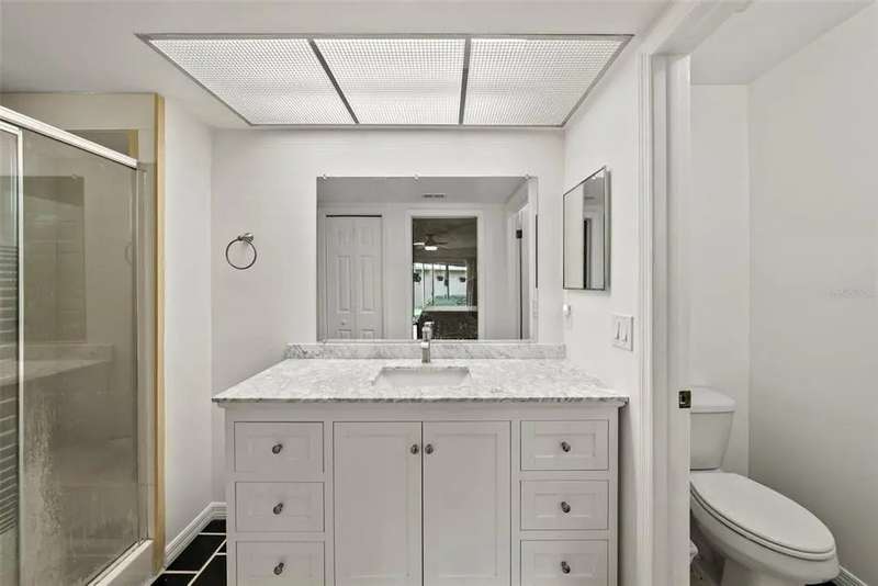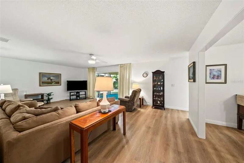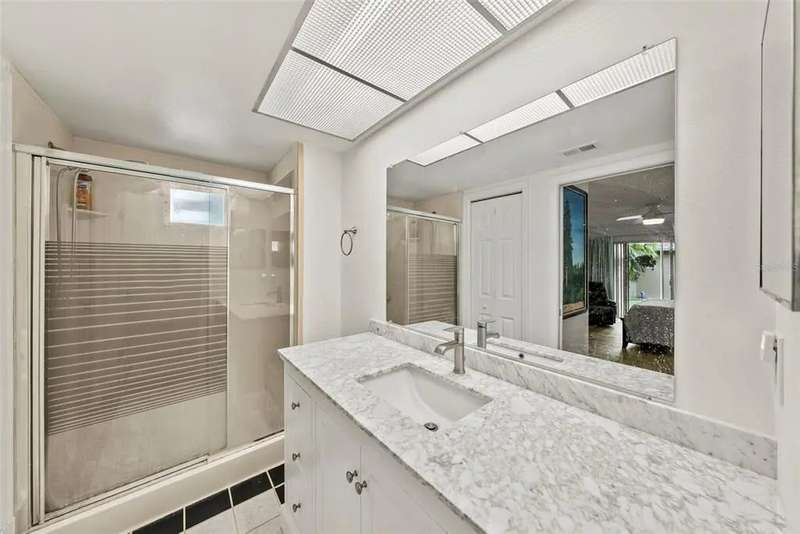 Discover the charm of Feather Sound, one of Clearwater’s most desirable communities, perfectly situated between Tampa and St. Petersburg with quick access to airports, world-class beaches, shopping, and dining. Known for its award-winning private golf and country club, scenic walking trails, and family-friendly atmosphere, this neighborhood offers the ideal balance of convenience and tranquility. Inside, the home showcases a long list of updates, including a new roof, flooring, AC, water heater, kitchen cabinets, and appliances. The split-bedroom layout provides privacy, with the main suite conveniently located near the indoor laundry room with large-capacity washer and dryer. A spacious guest bedroom at the front of the home features a walk-in closet and access to a fully renovated hall bathroom with tub/shower combination. Entertain with ease in the screened lanai, designed for effortless indoor/outdoor living. Additional highlights include a dining room that can be used a den, a bonus office space with skylight, and an attached two-car garage.