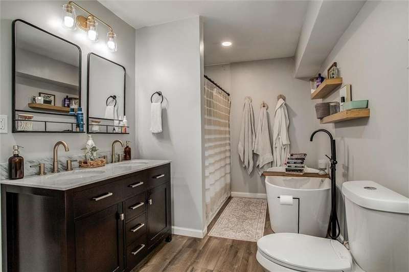 This is an interior designer's dream home! Every space has been custom designed to create the perfect flow and feel. The primary bedroom was expanded to create an ensuite spa-like bathroom with generous walk in closet. The open floor plan provides ample space for relaxing or entertaining. Two bedrooms and a full bath downstairs provides for separate living quarters, while still providing two bedrooms and two full bathrooms on the main level. The amount of love, care, creativity and effort are evident as soon as you walk in the door. This is one that is truly a show stopper and will leave you WOWED!