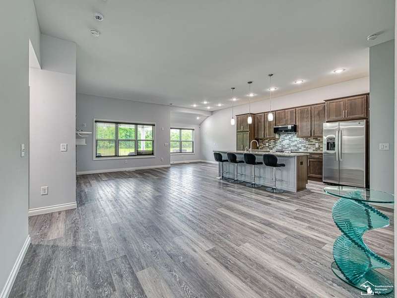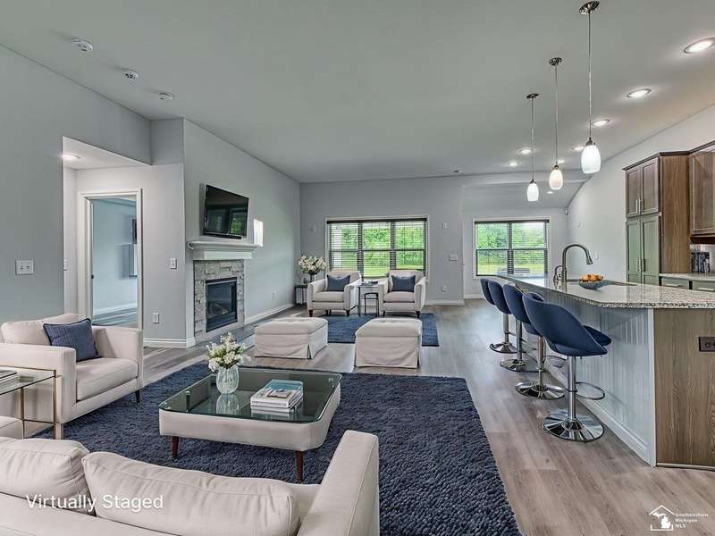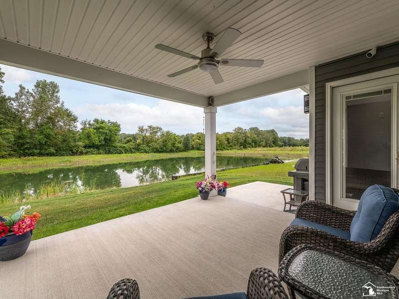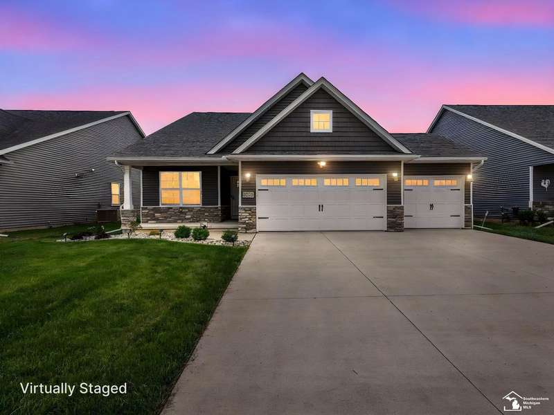 Perfectly Designed for Single Level Living, this Home is ideal for those looking to Downsize without sacrificing Luxury & Comfort! Home is situated on a Premium Lot backing up to a Peaceful Pond where you can Relax and Enjoy Nature & Abundant Wildlife. This Open Concept (Aristocrat Model) features a Spacious Great Room with Soaring Ceilings, Gas Fireplace & Dining Area bump out that leads to the Covered Rear Patio with Water View. The Fully Loaded Kitchen Boasts New Stainless Steel Appliances, Custom Tile Backsplash, Pendant Lighting, a Pantry, Upgraded 42" Oak & Maple Stained Cabinets & Soft Close Drawers! The Primary Suite is a True Retreat complete with Views of the Pond, Motorized Blinds, Tray Ceiling, Digital Fireplace, En-suite Bath w/Granite Counter Tops, Dual Sinks, Custom Zero Entry Tile Shower, Heated Towel Rack & Huge Walk-in Closet! The 3 Car Attached Garage is Fully Insulated & has Mounted Cabinets, a Peg Board and a Stunning Epoxy Floor. Other notable features include Covered Front Porch & Rear Patio, 2nd Floor Finished Loft w/Electronic Chair Stair Lift & Semi-finished Storage Room, Whole House Backup Generator, Natural Gas Line for Convenient Outdoor Grilling, Ceramic Tile & Engineered Wood Flooring Throughout, Whole House wired for Sound & Internet, Security System w/Front & Rear Cameras, Motion Lighting and More! Enjoy the Peace of Mind that comes with a Newer Home?no deferred maintenance worries here! Plus, the association provides Lawn Care & Snow Removal, Making this the Perfect Place for Easy, Low-Maintenance Easy Living.