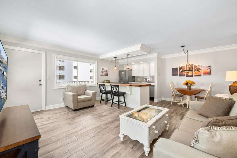 Welcome to your seaside retreat in beautiful South Florida. This beautifully renovated 4th-floor, 1-bedroom, 1-bathroom condo offers breathtaking, unobstructed views of the Atlantic Ocean right from your private balcony. Located directly on the sand of desirable Singer Island, this residence combines modern style with the serenity of coastal living.Inside, the condo features a completely updated interior with an open-concept layout, contemporary lighting, and lovely crown molding. The kitchen is equipped with contemporary cabinetry, stainless steel appliances, and tile countertops, perfect for both casual meals and entertaining. The spacious bedroom provides a peaceful escape with stunning ocean views to wake up to each morning.