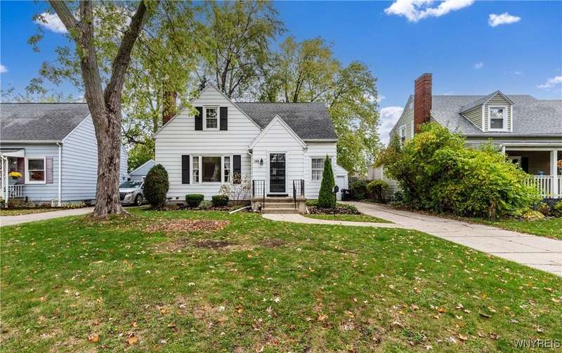 Beautiful 4-bed, 2 full, and 1 half bath cape cod style home located in the heart of the Town of Tonawanda. Stunningly Spacious interior with wall-to-wall carpet, hardwood, and tile flooring throughout. Formal dining room and living room have an abundance of light. Huge family room with sliding glass doors that lead to a private backyard. Having a 1st floor bedroom and full bath provide ample space and a multitude of uses, such as an extra bedroom, in-laws suite, or home office. Partially finished basement offers extra living space for a rec room, gym, or storage with the potential for customization. 1 car detached garage and driveway are great for added storage and parking. Conveniently located near the bike path, ideal for biking, walking, or jogging, with easy access to many shops and restaurants. Showings start immediately.