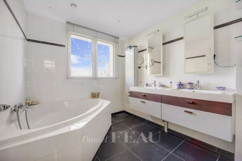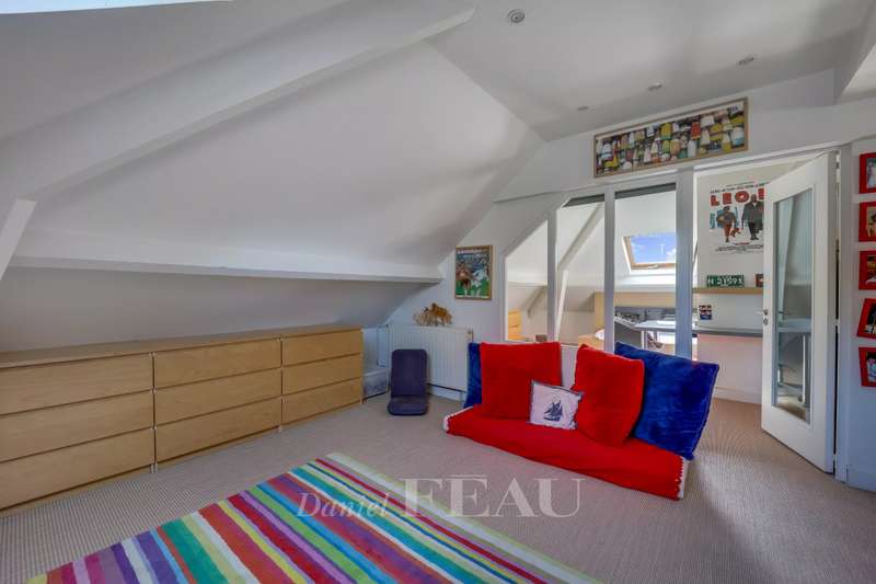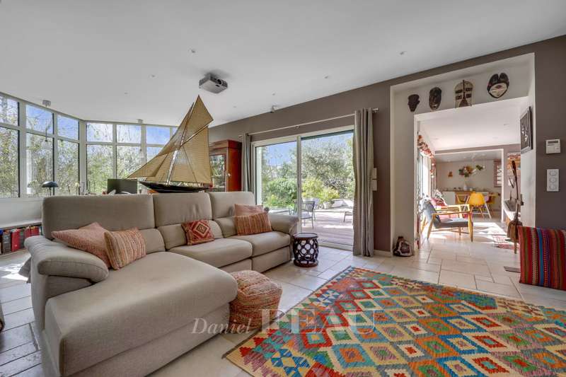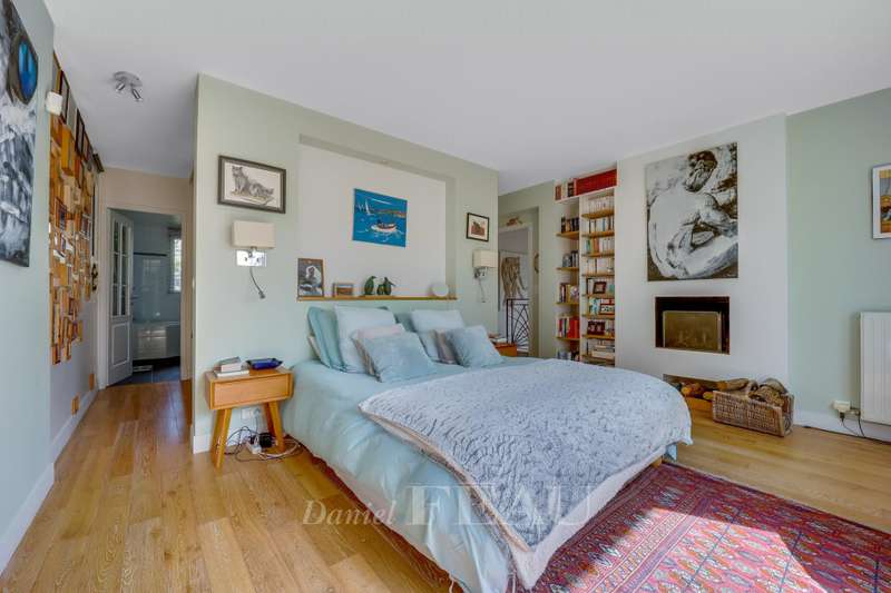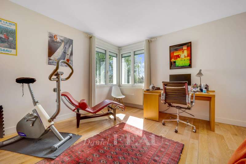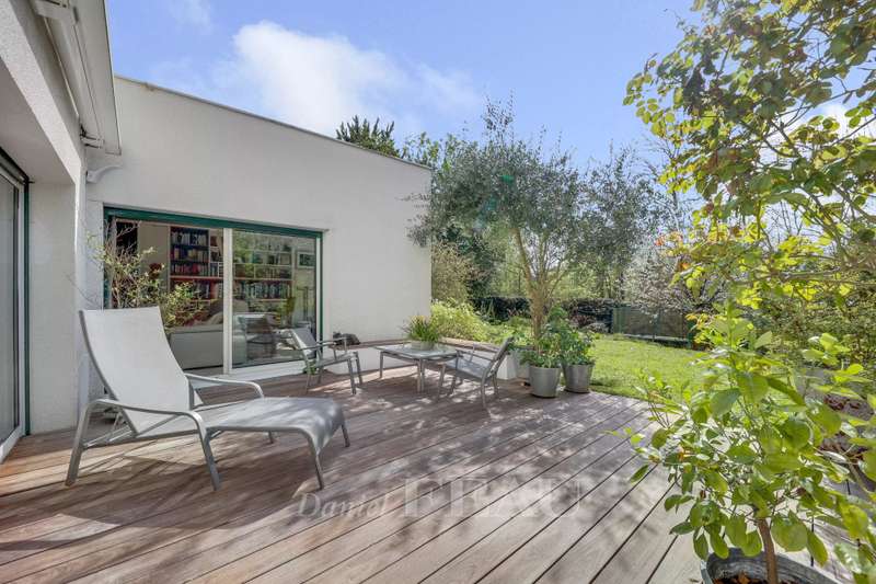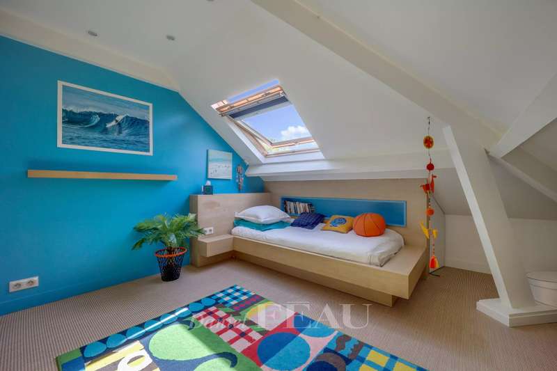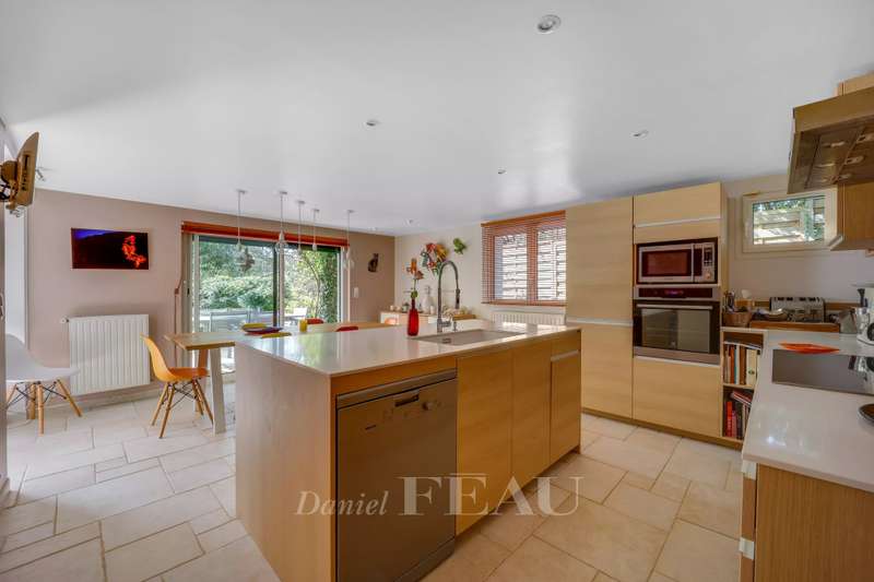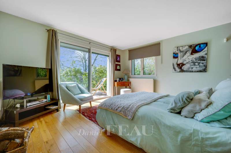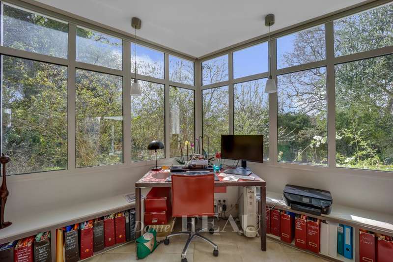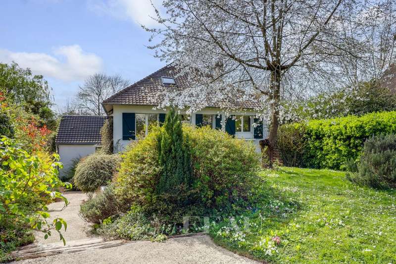Situated in a quiet cul-de-sac set back from the street, this beautiful, light-filled house with a total surface area of 250 m² is set in a flower-filled, wooded plot of over 1,000 m². The entrance hall leads to a vast reception area with a functional fireplace, bathed in light thanks to large windows opening onto the south-facing terrace and garden. This 86 m² space also includes a second living room opening onto the garden, as well as an open kitchen with dining area. A utility room with boiler room, wine cellar, guest toilet and dressing room complete this level. A beautiful stone and wrought-iron staircase, illuminated by a skylight, leads to the second floor, which features two bedrooms and a vast master suite with fireplace and terrace; two dressing rooms and a bathroom with shower. A laundry room, shower room and separate toilet complete this level. On the second floor, a large landing (which could be used as an additional bedroom) leads to two bedrooms, a bathroom with shower and a toilet. The house has been carefully maintained and regularly serviced. It has a good energy audit. Facing south, it offers generous volumes and plenty of natural light. The fully enclosed garden is a veritable showcase of greenery, with vegetation reminiscent of Mediterranean gardens. Garage with electric charging point. Ideal location in a residential neighborhood, close to amenities and schools, and just a few minutes' walk from the T13 streetcar to Saint-Germain-en-Laye and St Cyr. Numerous buses to neighboring towns: Versailles, Vaucresson...