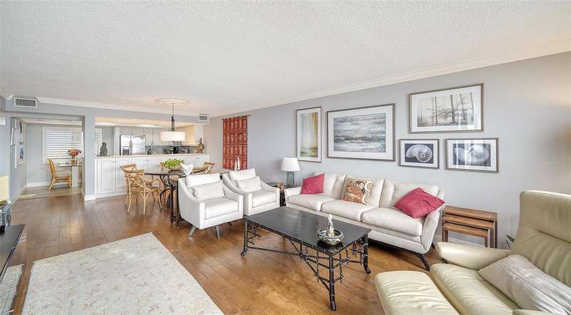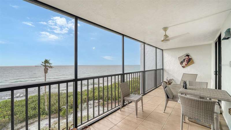 Direct Gulf and Bay Views on Longboat Key. Enjoy stunning Gulf and Bay views from this 2-bedroom, 2-bath residence at The Castillian, a pet-friendly beachfront community on beautiful Longboat Key. The open, eat-in kitchen flows seamlessly into the living and dining areas— perfect for entertaining or relaxing by the sea. The living room, primary suite, and guest bedroom—all featuring rich wood flooring—open onto a spacious screened beachfront lanai, where you can take in spectacular sunsets and gentle Gulf breezes. The Castillian offers two well-maintained buildings, each with just 30 units and rare underground parking. Recent updates include new roofs on both buildings as well as new landscaping. Community amenities include a heated beachfront pool and hot tub, outdoor grilling area, tennis court with pickleball, and private beach access with incredible sunset views. Ideally located mid-island, The Castillian is just minutes from Sarasota’s world-class shopping, fine dining, cultural attractions, and the Sarasota-Bradenton Airport. The owner has already relocated, so this inviting home is vacant and ready for you to make it your own.
