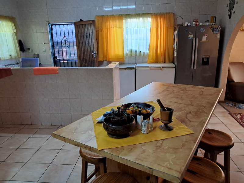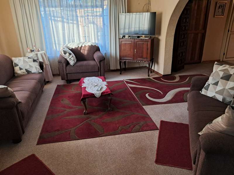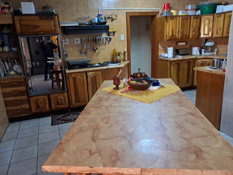 A well maintained house with 3 spacious bedrooms. Three bathrooms of which the main is en-suite and a guest toilet. A spacious lounge and separate TV room and an open plan dining room/kitchen. The kitchen is well equipped with cupboards aplenty and all the goodies. A very spacious lapa for entertainment with built in braai is part of this. Further it has a two bedroomed townhouse and a one bedroom flatlet as well as six garages and a carport for two cars. Two by Jo-jo tanks of 5000l each with pumps. Please contact me to view