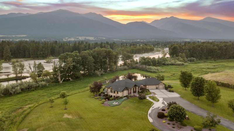 Set on 17.77 acres along the Bitterroot River, this riverfront estate offers a rare combination of upscale living, total seclusion, and direct access to Montana's unmatched outdoor lifestyle. Mitchell Slough borders the property-a prized stretch of water known among local anglers for its beauty and exceptional fishing. Despite its serene, tucked-away setting, the estate is just minutes from fine dining, craft breweries, boutique shopping, and all the conveniences of town-providing the perfect balance of peaceful retreat and modern accessibility. The home features a chef's kitchen with premium appliances, a spacious center island, and a built-in coffee station. An open-concept design connects the kitchen to the dining and living areas, where floor-to-ceiling windows and a fireplace create a warm, inviting space. Comfort and entertainment are seamlessly integrated, with amenities including a theater room, gym, office, hobby room, whole-house stereo system, and a lower-level bar and lounge. The primary suite is a private retreat with its own deck, coffee bar, sauna, jetted tub, and walk-in closet. The property is thoughtfully equipped for both convenience and lifestyle. There are two laundry rooms, heated tile and in-floor radiant heat, a gated driveway, and an attached garage. A large detached shop features drive-through access and a concrete floor. A private pond, along with access to hiking, hunting, and world-class fishing, rounds out this truly unique offering. For equestrian and outdoor enthusiasts, the estate also includes a tack room and bunkhouse, lean-to, and round pen-making it ideal for a variety of recreational pursuits.