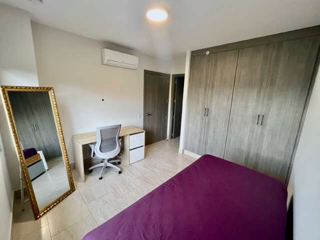 Spacious and modern, fully furnished apartment for sale in the newly constructed EXPLORA, located in the exclusive residential area of Panama Pacifico surrounded by nature with all necessary amenities just minutes away. This brand new apartment has 2 bedrooms, 2 bathrooms, a guest bathroom, kitchen, living room, dining room, laundry room and a spacious balcony with a spectacular view of the natural surroundings. Each bedroom has its own private bathroom and the master bedroom with a walk-in closet, bathroom with double sink and balcony. The kitchen boasts a modern, open style concept, fully equipped with quartz countertops and many plenty of cabinets. Explora offers a spectacular social area with swimming pool, water park, event rooms, BBQ areas, ping-pong and pool table, rest area with television and sofas and a fully equipped, state of the art gymnasium.
