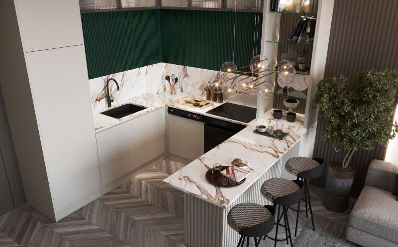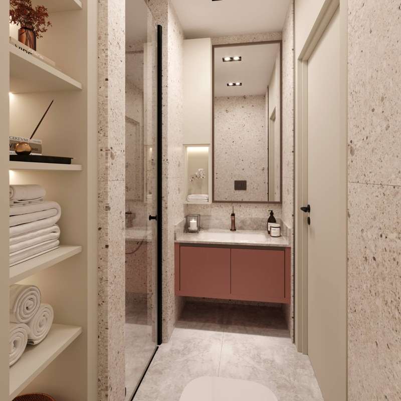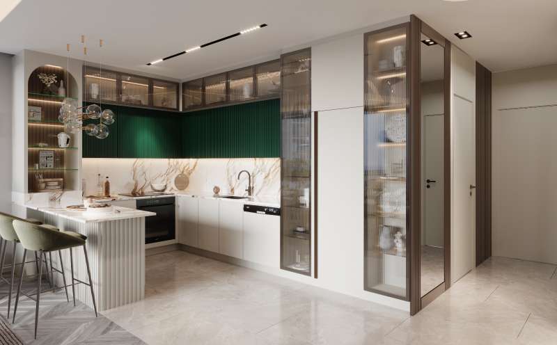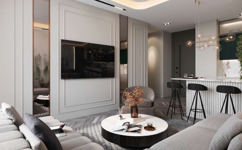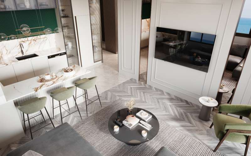 The apartments, ranging from 1 to 3 bedrooms, consist of a living room, open-plan kitchen, shared bathroom or en-suite bathroom, dressing room, and balcony units. These brand-new apartments, distinguished by their quality craftsmanship, are equipped with top-tier products and materials.