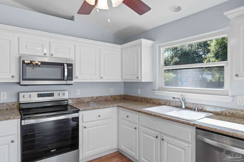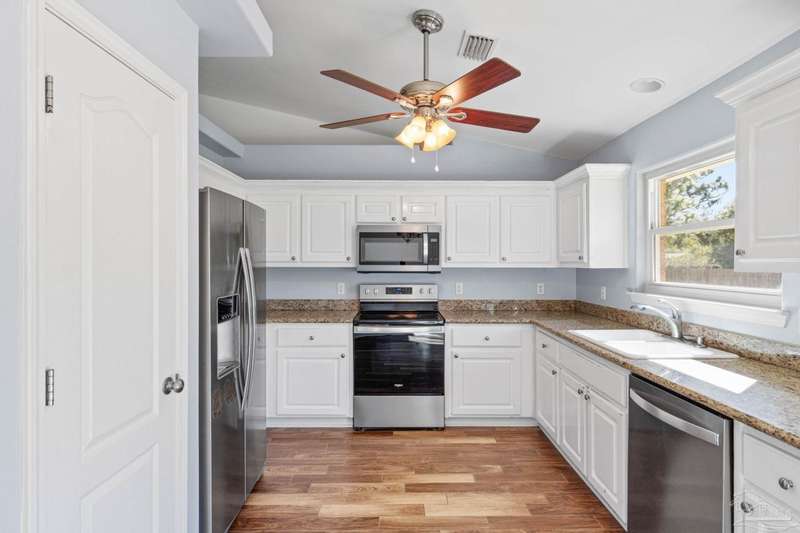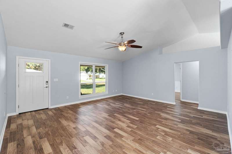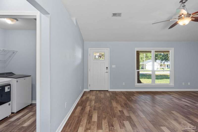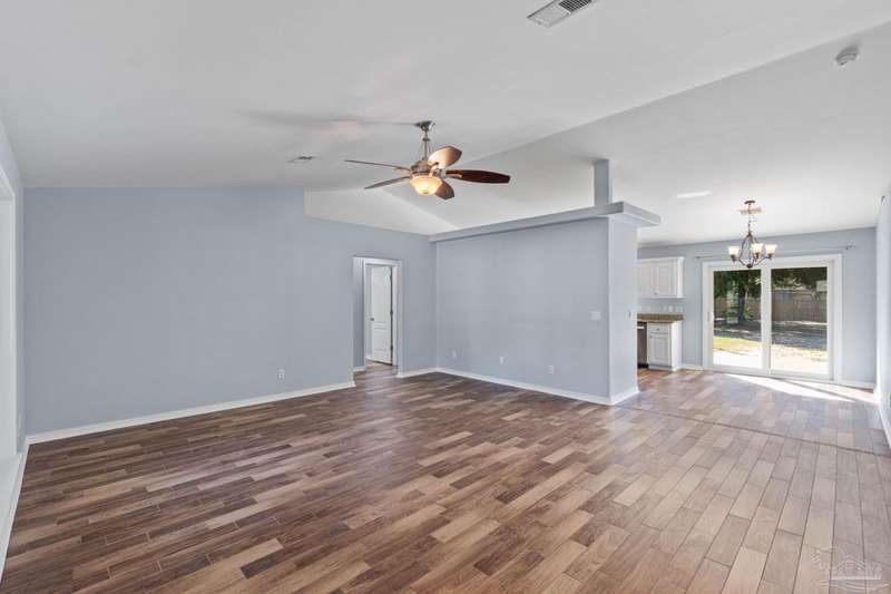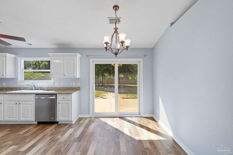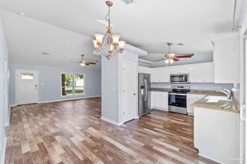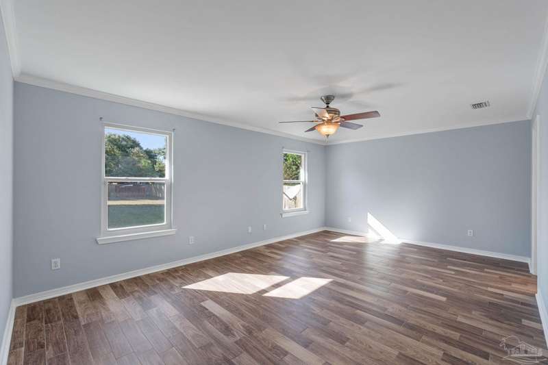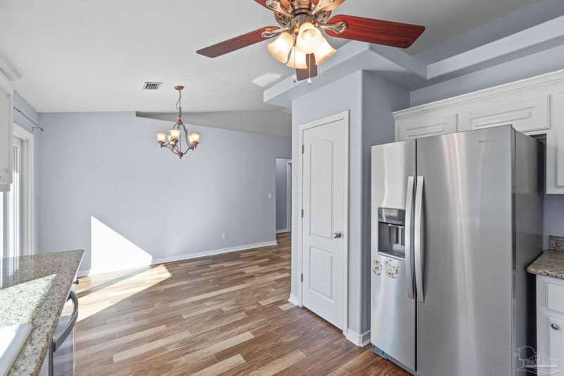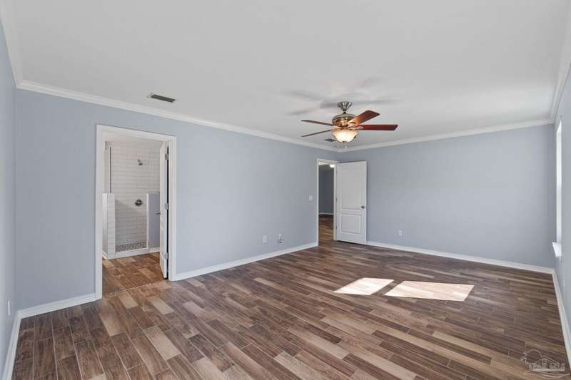 : Freshly painted with LVP through out and ready for new owners! Living room adjoins the kitchen/dining area with sliding glass doors that lead to the large privacy fenced backyard, that is a blank canvas for you to create your backyard living dreams! Master bedroom with ensuite featuring a walk-in tiled shower. The additional bedrooms share a hall bath, with all bedrooms adorned with crown molding. Enjoy all of the amenities of living in Holley By The Sea!
