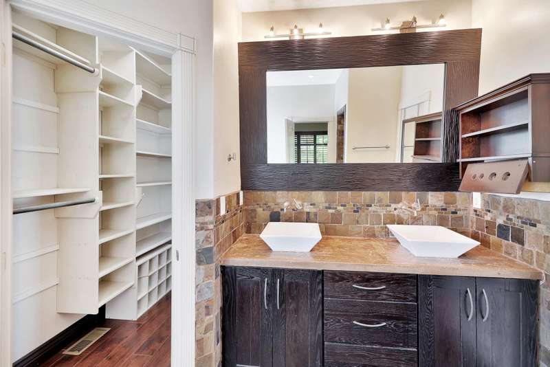 This is a must-see home, one of the coolest houses on the market in this price range. energy efficient 2 X 6 construction that allows for the extra insulation in the home, upgrades everywhere! Textured walls and faux painted accents in the ceilings, classic open floor plan, covered deck, lots of natural light, solid surface counter tops, top of the line Viking appliances, gas range/stove, separate warming drawer, walk-in pantry, beautiful wood floors, no back yard neighbor, on a cul-de-sac lot. Floor to ceiling slate primary bedroom walk-in shower, 2 sinks vanity, custom window treatments, (Hunter Douglas) wood blinds, walk-out basement, oversized wet bar, new carpet in the lower level, bonus office that could be used as a media room or exercise room. Like to entertain, there is a whole house surround sound system in place to enjoy! Private separate laundry room, powder room on the main level, and sprinkler system. Must see to appreciate!