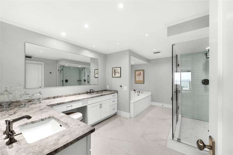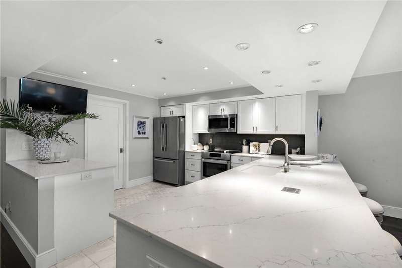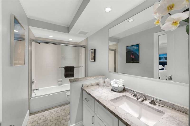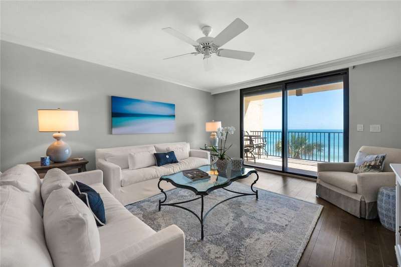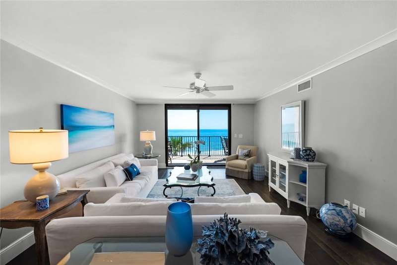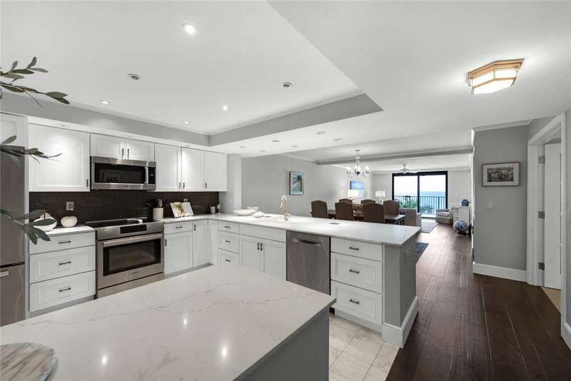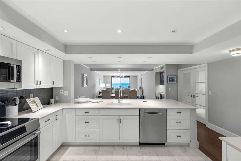 Oceanfront condo, assessments paid & seller willing to pay upcoming. The modern kitchen features bright cabinetry, marble floors & stylish recessed lighting. Bar area includes a marble counter & wine cooler. The primary bedroom offers stunning ocean views & direct access to the oceanfront balcony. Den/office off guest suite. Step out onto the covered balcony & soak in the breathtaking ocean views completing the ultimate coastal living experience. A/C 2023. Milestone and SIRS studies complete! Osmosis System, turnkey & 2 garage parking spots. Pier & pool access. Sizes approx./subj. to error.