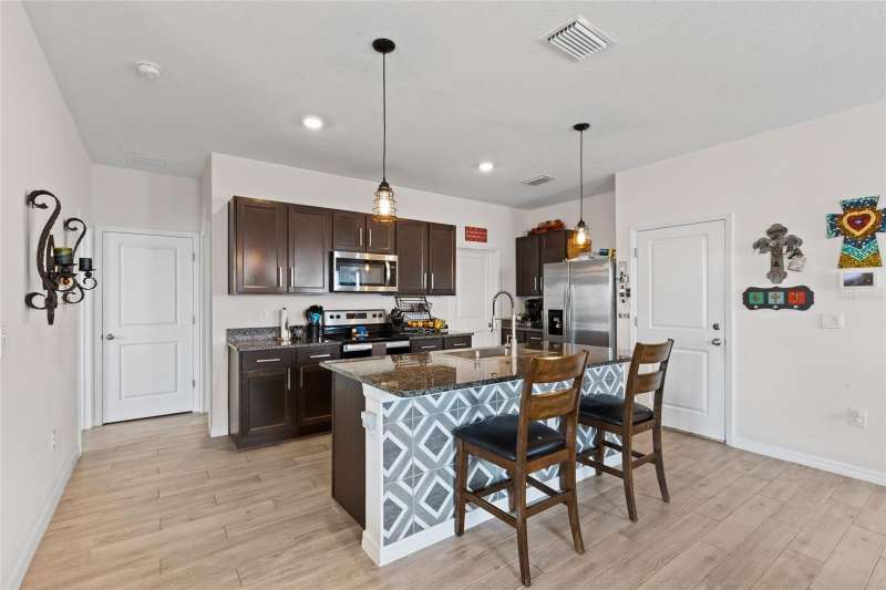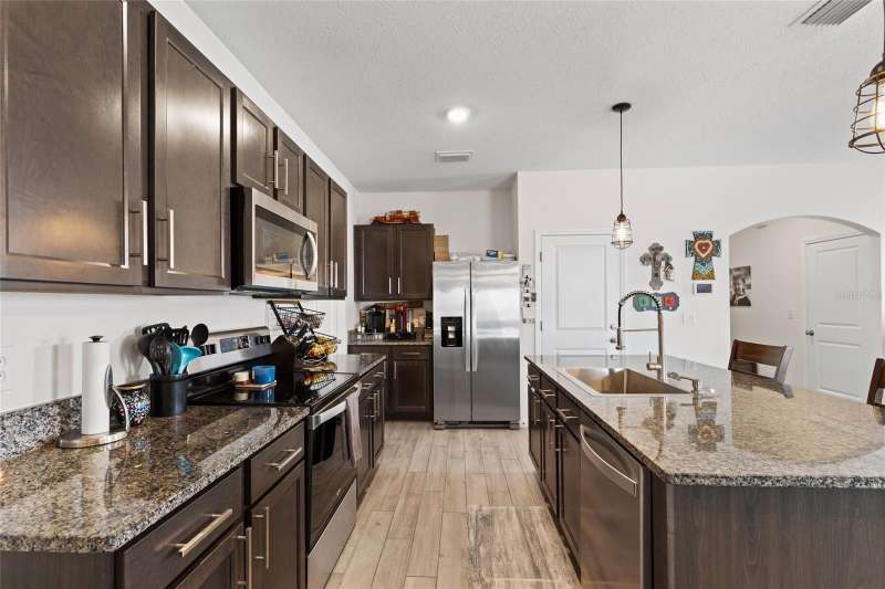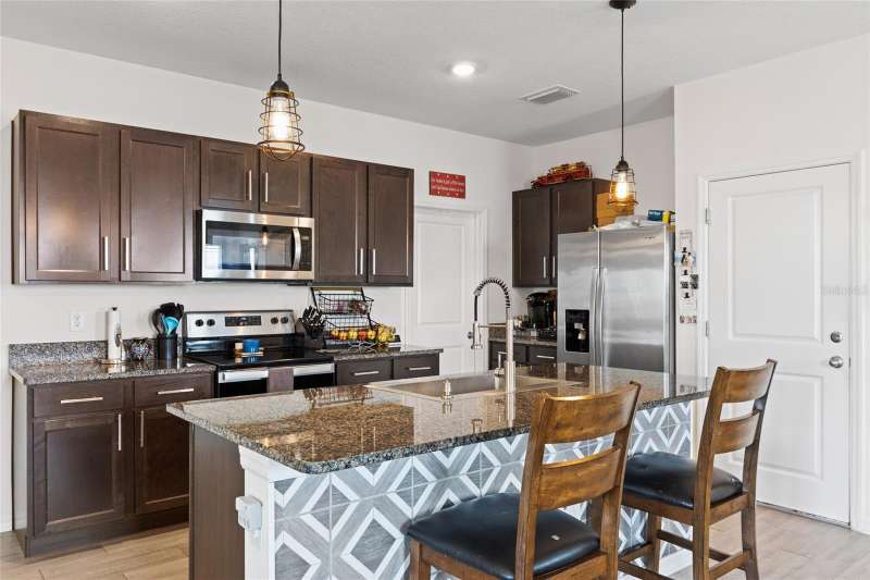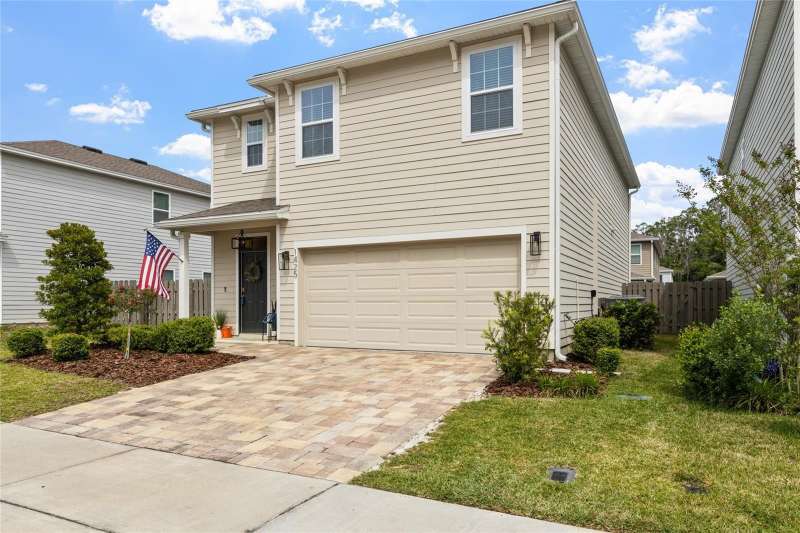 Under contract-accepting backup offers. Step into this almost new home nestled within the Arbor Greens community at the heart of Jonesville. Boasting five bedrooms and three bathrooms, this spacious home is primed for immediate occupancy, seamlessly blending contemporary elegance with the tranquility of suburban living. As you enter, be greeted by an expansive interior adorned with low-maintenance wood-look tile floors, crafting an inviting atmosphere throughout. The kitchen features granite countertops, stainless steel appliances, a farmhouse sink, breakfast bar, coffee bar and a generously sized pantry for all your storage needs. Designed with entertainment in mind, the open-concept layout effortlessly connects the kitchen, dining, and living areas, forming a dynamic space for gatherings and relaxation. The owners have tastefully upgraded fixtures, added shelving, installed gutters, and other finishing touches, setting this home apart from new construction. Retreat to the primary suite, complete with a spacious ensuite bathroom and a walk-in closet, offering a private sanctuary for unwinding. With one bedroom and bath downstairs and four bedrooms and two bathrooms upstairs, this layout offers convenience and privacy. Upstairs, a roomy laundry area with included washer and dryer, along with extra shelves and storage, adds to the home's functionality. Upstairs is also home to some extra space perfect for a play area or study nook. A sliding glass door leads to the covered patio, extending the living space outdoors. The fully fenced yard invites endless outdoor enjoyment, whether it's hosting barbecues, gardening, or simply soaking in the Florida sunshine. Conveniently situated near Gainesville, residents will appreciate easy access to top-rated schools, Tioga Town Center, dining options, parks, and more. Plus, residents can take advantage of community amenities such as the pool, clubhouse, CLAY ELECTRIC, and front yard maintenance provided by the association. Don't miss out on the opportunity to embrace quintessential Florida living at 1425 NW 136th Drive. Schedule your private tour today and discover your new dream home! This home is also for rent for $2,550/month.