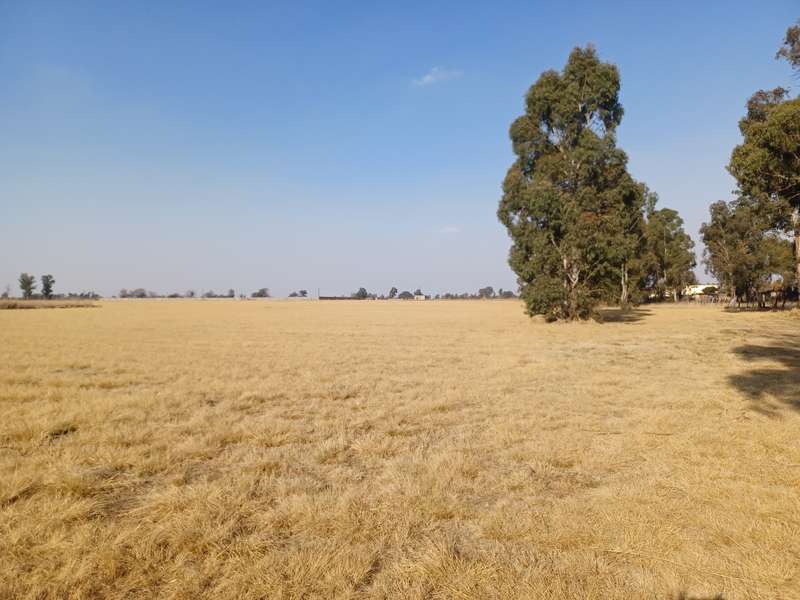 Nice flat arable 8.9ha land available in Modder East Orchards, close to Delmas. 2 borehole (NOT FITTED) and no electricity, electricity close to the plot for connection. This property is suitable for small scale farming. Good fertile soil!! Two Title deeds. Phone me today!! If you snooze you loose on this one.