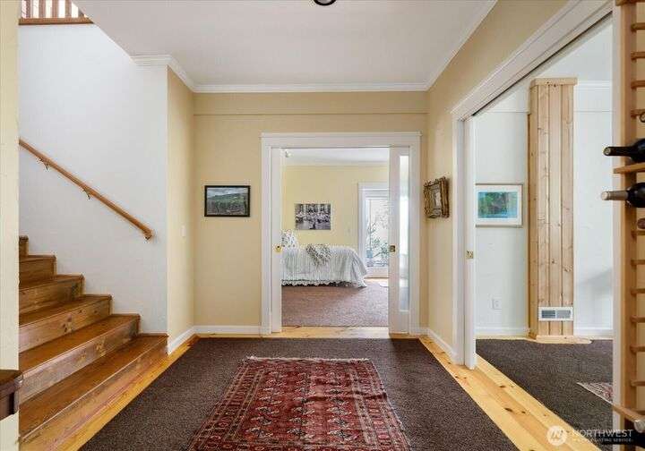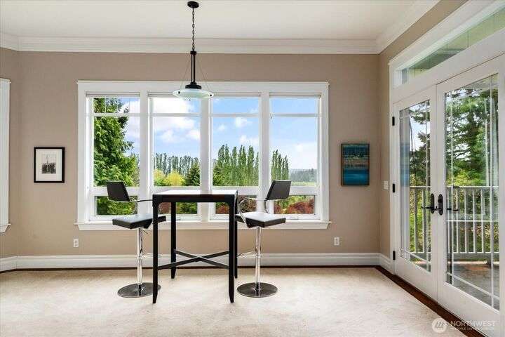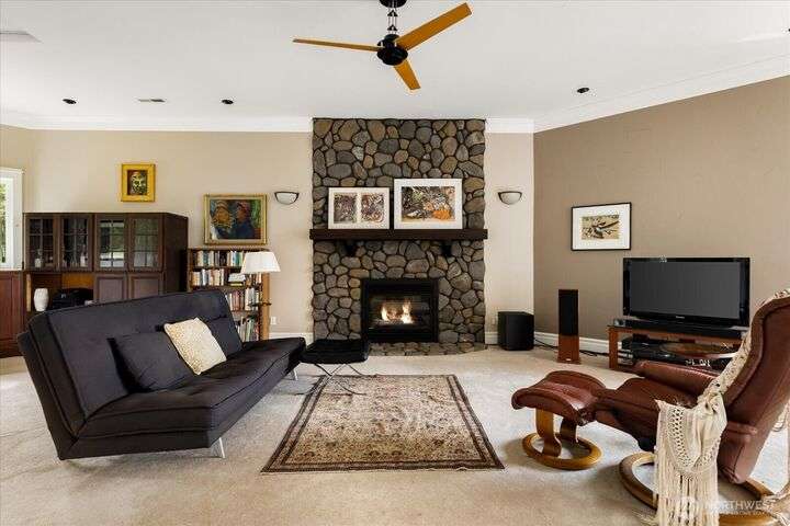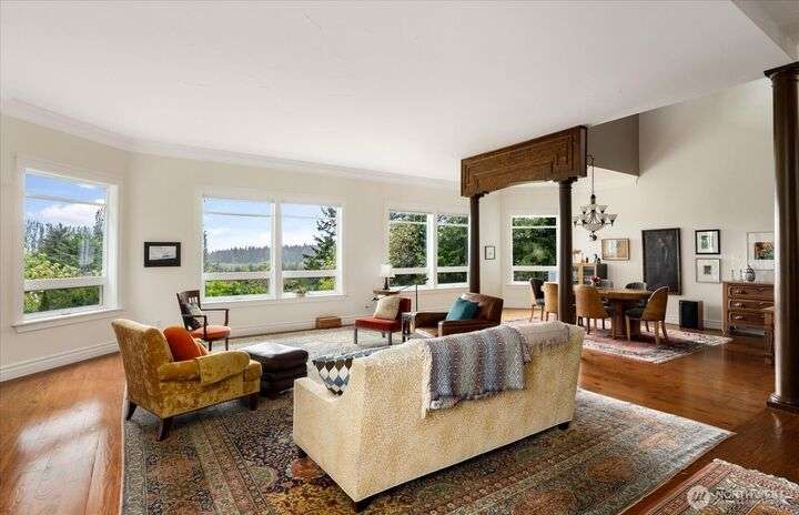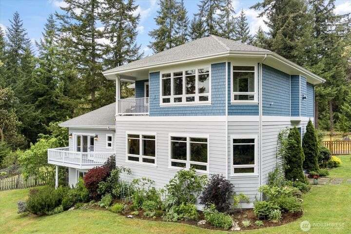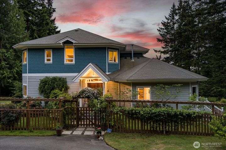 Your ideal Whidbey escape: Serene island living with easy access to Langley, Freeland, & Clinton ferry, plus stunning Olympic views! This solidly crafted custom home offers a flexible floor plan. Main level boasts a Great Room with 10' ceilings & architectural details, country kitchen, elegant dining, & luxurious Primary Suite, all essentials on one floor. Upstairs, find a family room, wet bar, 1/2 bath, and office/bonus room. On the lower level find a 2-bdrm suite with full bath, perfect for guests. Set on 3.6± open-woodland acres, enjoy pleasant strolls, deer-proof landscaping, a vegetable garden, & orchard. Detached 2-stall garage features a finished room for studio, office, gym, or storage. Embrace your country living dream!