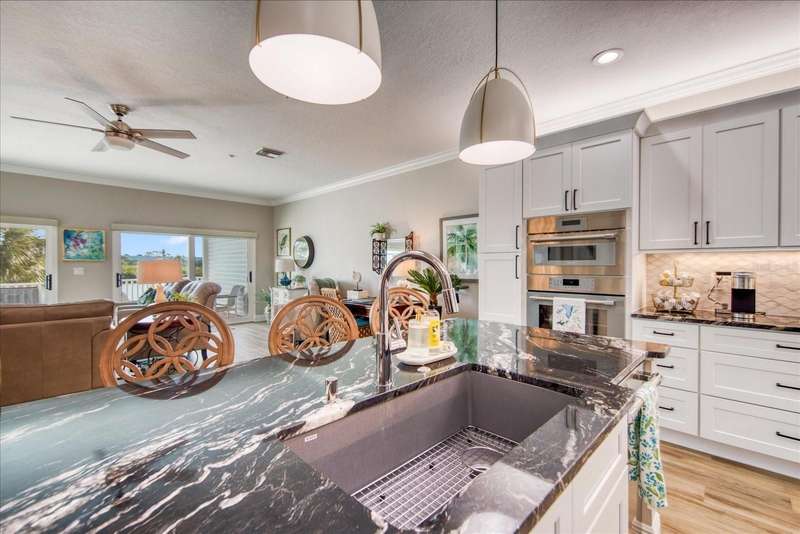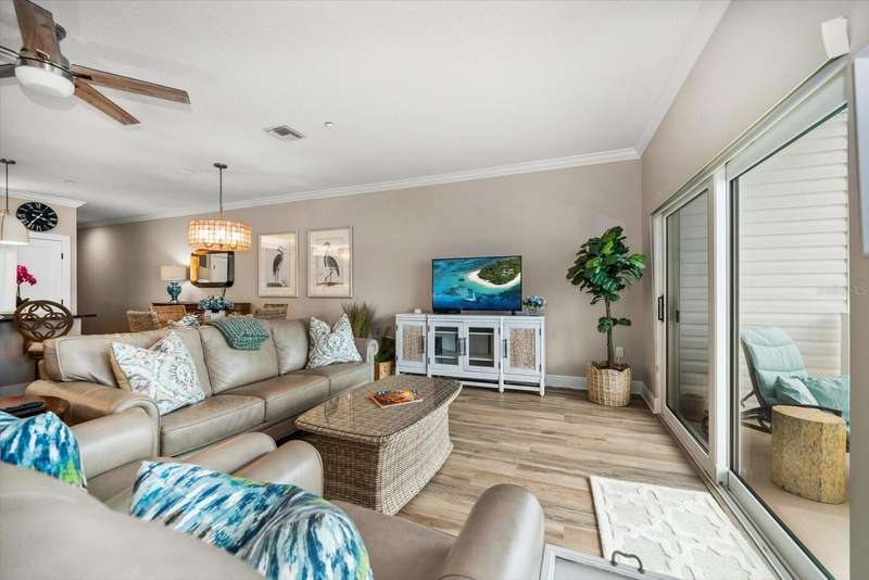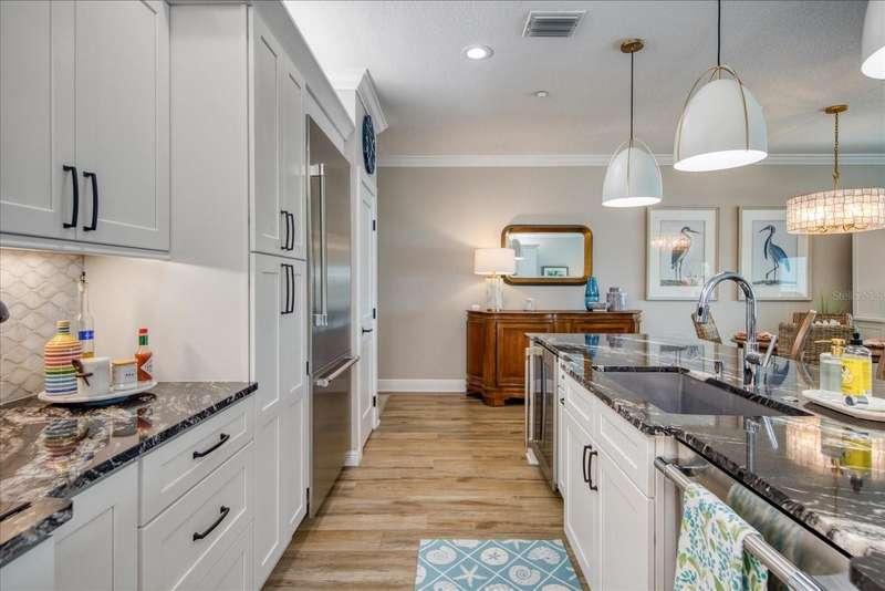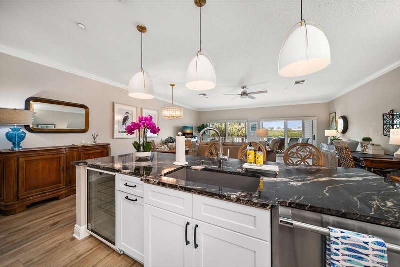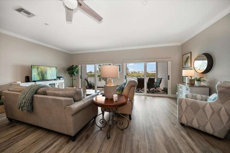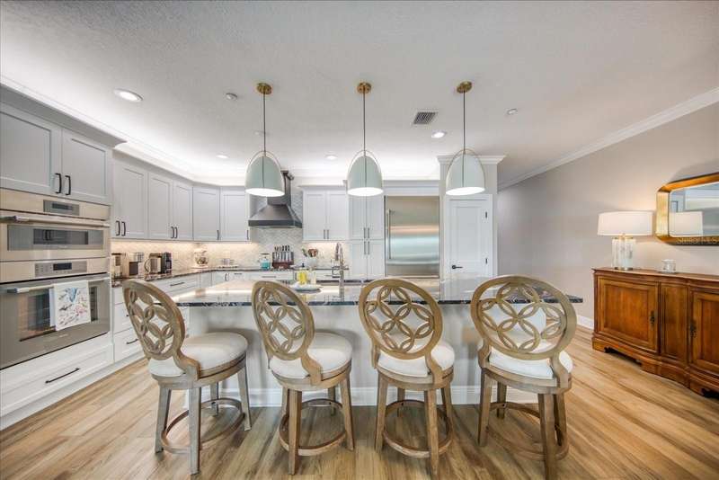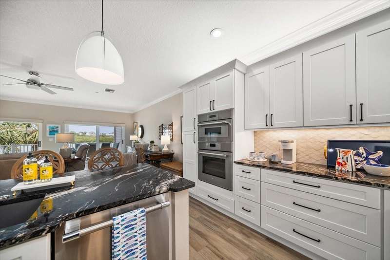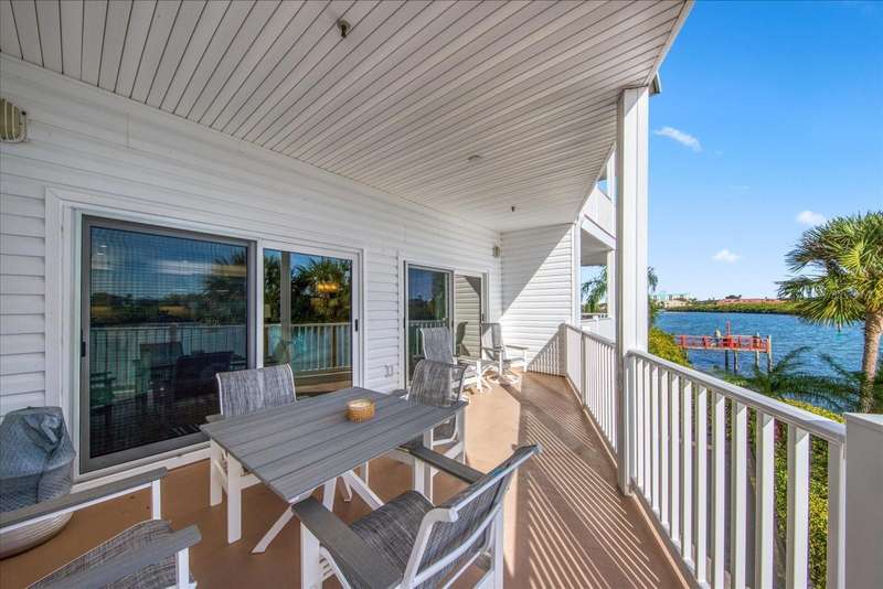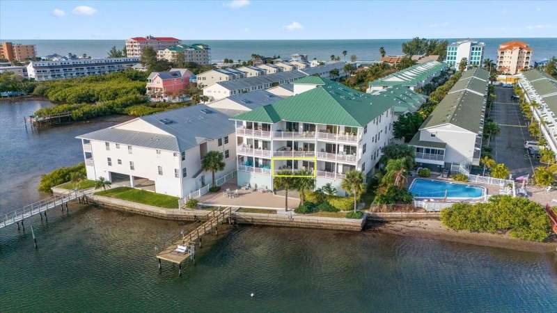 Welcome to your coastal paradise! Step into luxury living with this fully furnished 2-bedroom, 2- bath waterfront condo that captures the essence of coastal elegance. With direct east-facing views of the Intracoastal, this home immerses you in breathtaking water vistas from the living room, kitchen, and master bedroom. Step inside, and you'll find a meticulously remodeled haven completed in 2023. The open floor plan seamlessly connects the living space, showcasing a gourmet kitchen adorned with Thermador Appliances, granite countertops, a marble backsplash, and custom wood cabinets with soft closures. Picture yourself enjoying a morning coffee or evening cocktail on the oversized covered balcony, where local dolphins might make a special appearance. The master bedroom is a retreat in itself, featuring his and her walk-in closets, a double granite vanity, custom wood cabinets, and a luxurious tiled walk-in shower. Every detail, from the crown molding to the top-of-the-line finishes, exudes sophistication. Convenience meets luxury with in-unit laundry and ample storage space. Dive into the community amenities – a heated pool, two parking spaces, and a dock for fishing or kayaking. Just a short walk to local restaurants and a block away from the beach, this condo offers not just a home but a lifestyle. Imagine golf courses, pickleball courts, and public boat ramps within easy reach. Plus, seamless access to Tampa Bay airports for stress-free travel. Don't miss the chance to make this waterfront dream your reality. Welcome home to a life of unparalleled luxury and coastal bliss!