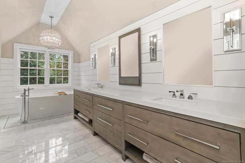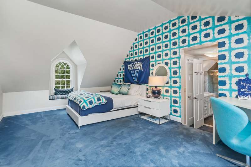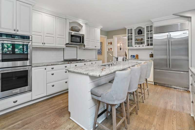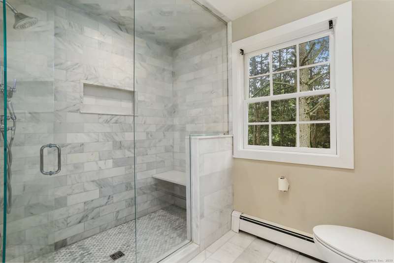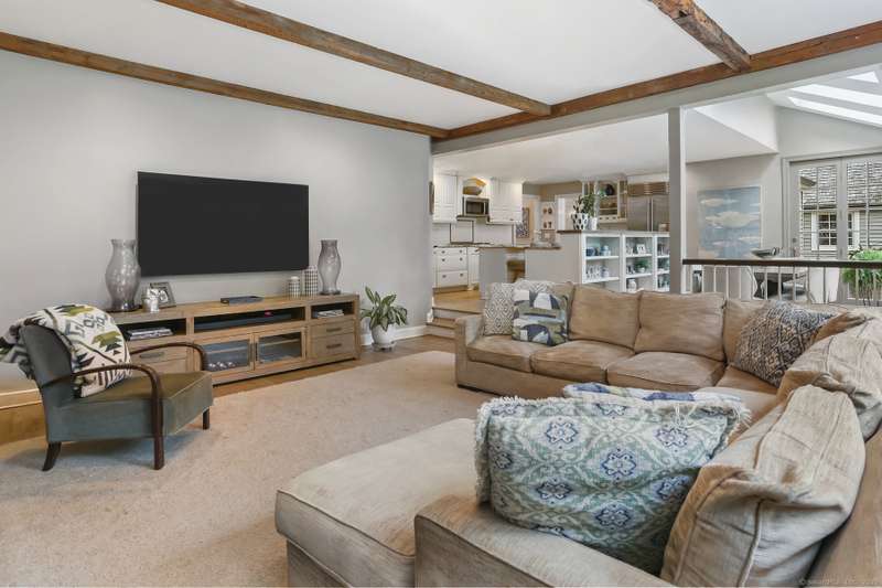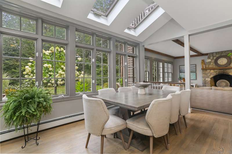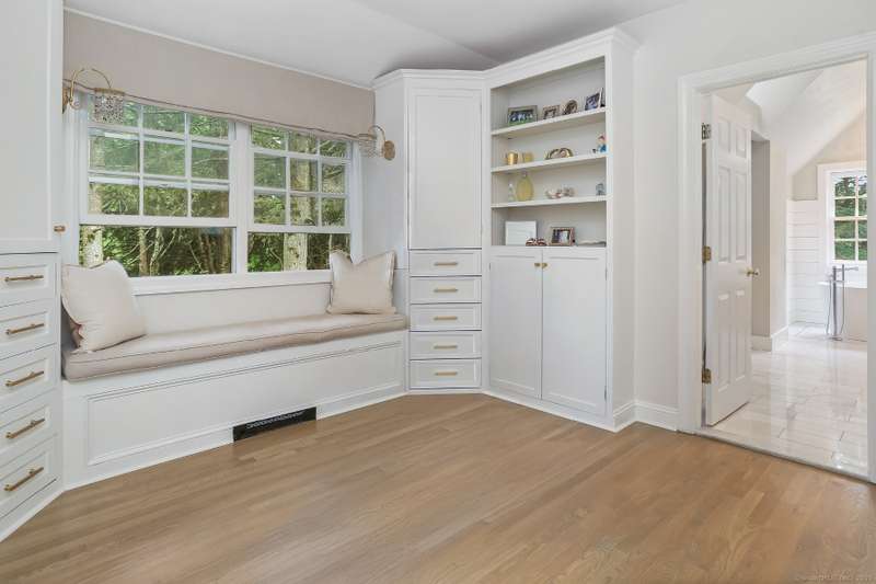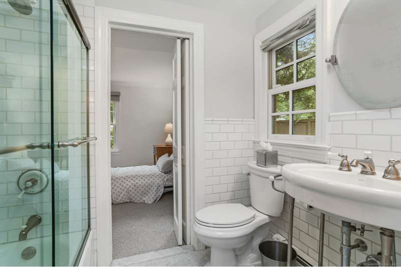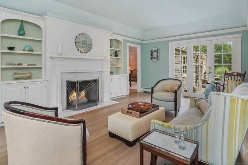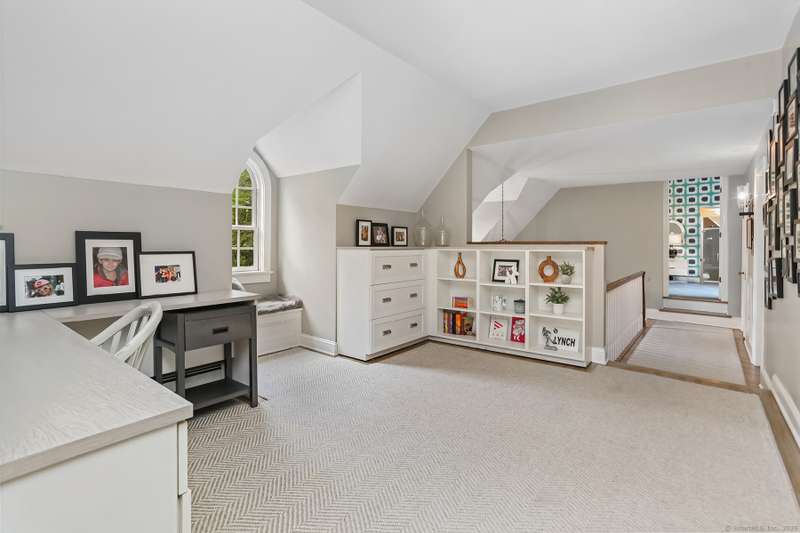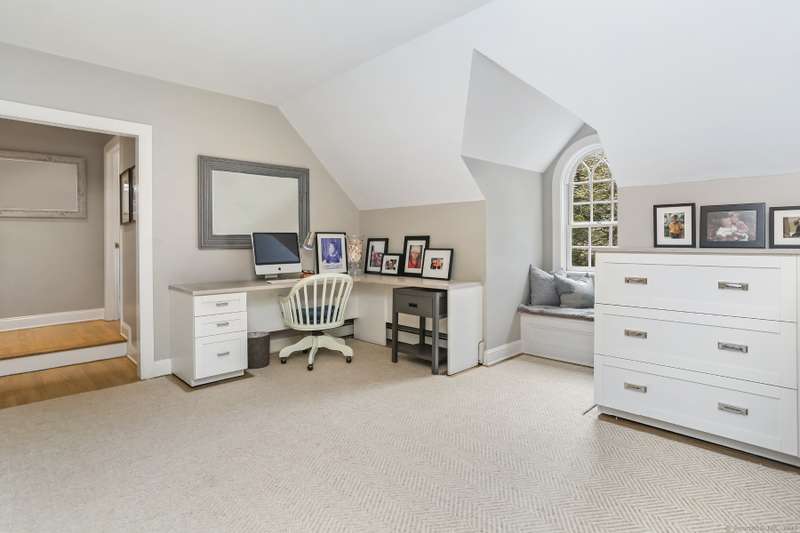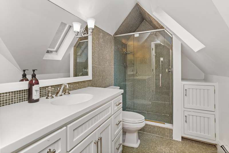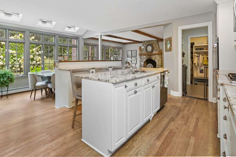 Welcome to this beautifully maintained 1945 stone-front Cape in the heart of Old Hill. Loved by the same family for 22 years, it radiates warmth and character. With 5 bedrooms, 5.5 baths, and two flexible spaces for home offices, it offers comfort and versatility, including a first-floor suite ideal for guests or in-laws. The light-filled kitchen flows into an inviting dining area and cozy sunken family room with a stunning river-rock fireplace-perfect for gatherings or quiet evenings. French doors open to a level backyard with a bluestone terrace, outdoor fireplace, and grilling area, creating an ideal setting for entertaining. A 3-car tandem heated garage, mudroom, pantry, and laundry room add practicality, while a gracious dining room and front-to-back living room with built-ins and a second fireplace set the stage for special occasions. Upstairs, the serene primary suite offers a balcony, spa-inspired bath, and dressing room. Three additional bedroom, 2 additional full baths and a