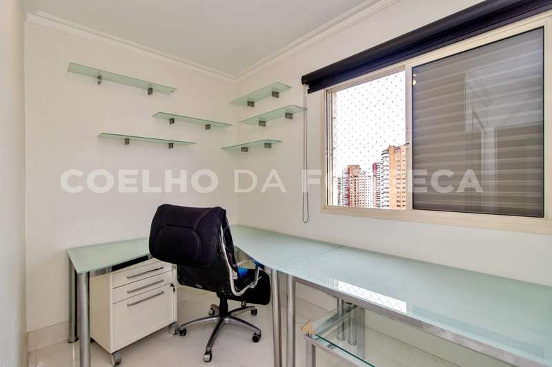 Moema: Pássaros, com vista em prédio recuado e belo jardim. Espaço gourmet e áreas comuns modernas e elegantes, em projeto executado por conceituado escritório de arquitetura. 3 vagas demarcadas e definitivas, além de um depósito. Sala ampla, que pode ser ainda maior se o 4º dormitório for incorporado. Atualmente, funciona como escritório da residência. Amplas suítes repletas de armários.