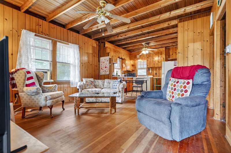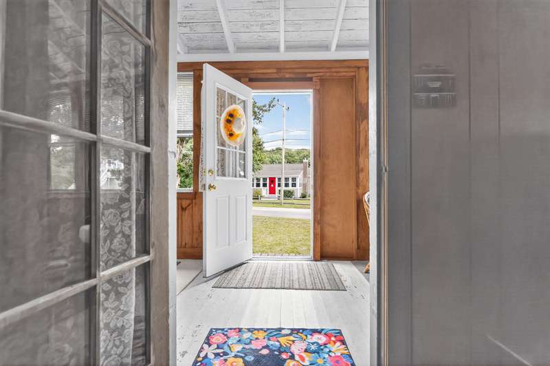 Welcome to 70 Wings Neck Road a quintessential Cape Cod cottage nestled on the coveted Wings Neck peninsula in the beloved village of Pocasset. Available for the first time ever, this timeless retreat is a rare opportunity to own a piece of the Cape's cherished history in the Pocasset Beach Improvement Association (PBIA). Step inside and be charmed by the warmth of original fir wood floors, lofty ceilings with exposed beams, and a sun-kissed front porch that invites the ocean breeze. The layout includes two cozy bedrooms on the first floor, an open living, dining, and kitchen combo, and a large airy second-floor room ideal for overflow guests, creative space, or quiet retreat. A delightful pantry off the kitchen adds nostalgic character and practical storage, while the detached garage offers additional space for bikes, beach gear, or a future studio. Outside, enjoy a generously sized yard a rare find in this coastal enclave perfect for summer games, gardening, or gathering.