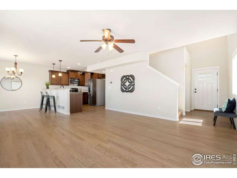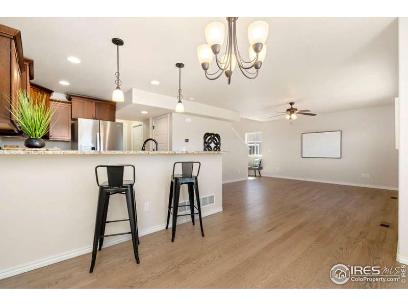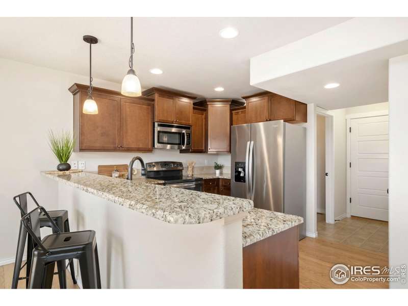 Come take a look at this incredible, well kept townhome in Wellington! The townhome boasts hardwood floors throughout, granite slab counters, stainless steel appliances and tons of natural light. The unfinished garden level basement includes a rough in for future growth! Check out the large primary bedroom with vaulted ceilings and views to the foothills, walk in closet and primary bathroom with dual sinks. Two additional bedrooms are also upstairs, including a full bath. The main level includes laundry off the insulated garage, and a half bath off the main entry. A wood deck out the back looks over the large lot, which has been tastefully xeriscaped with a bit of grass! The home has been pre-inspected. Check it out!