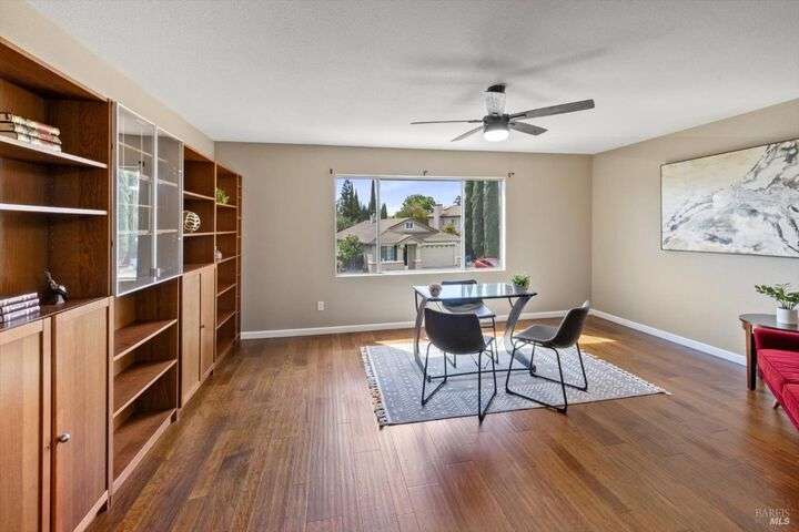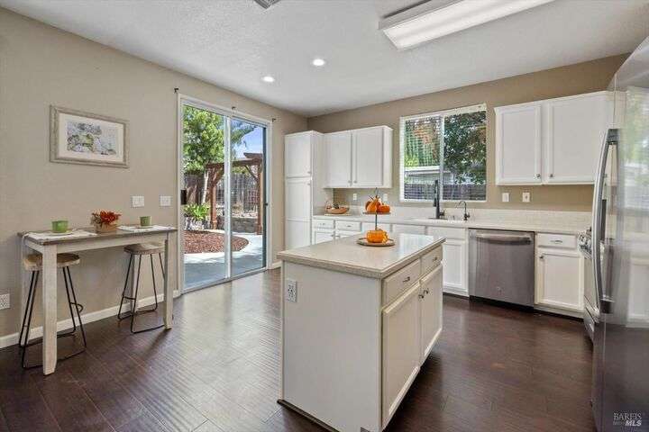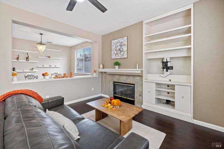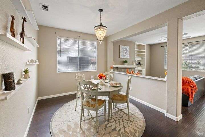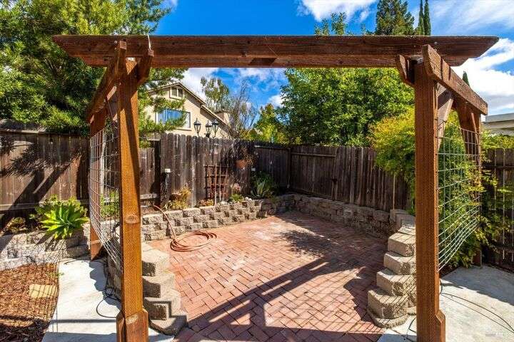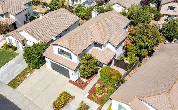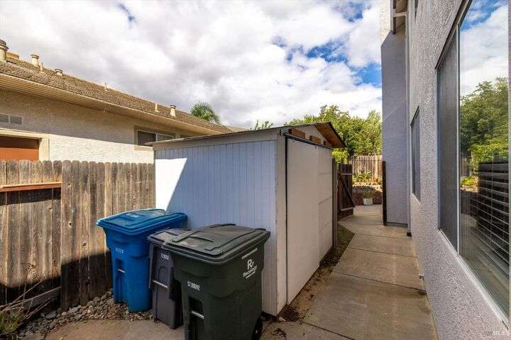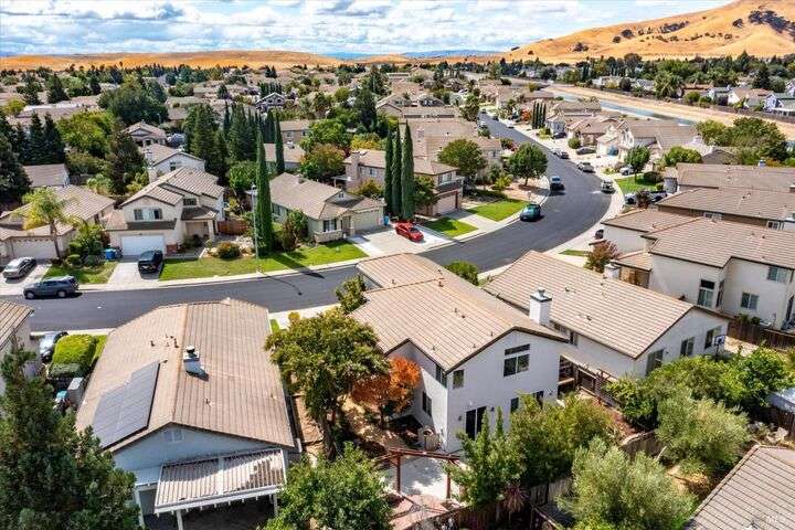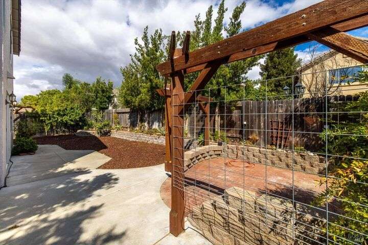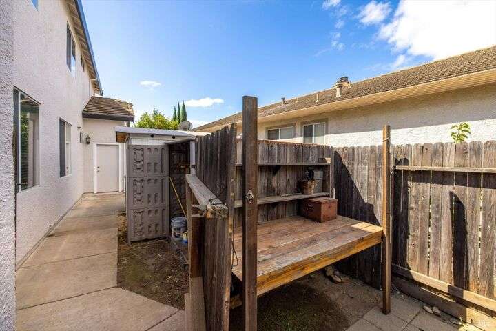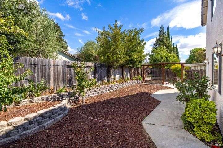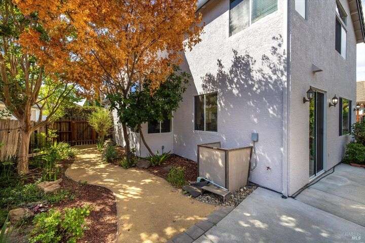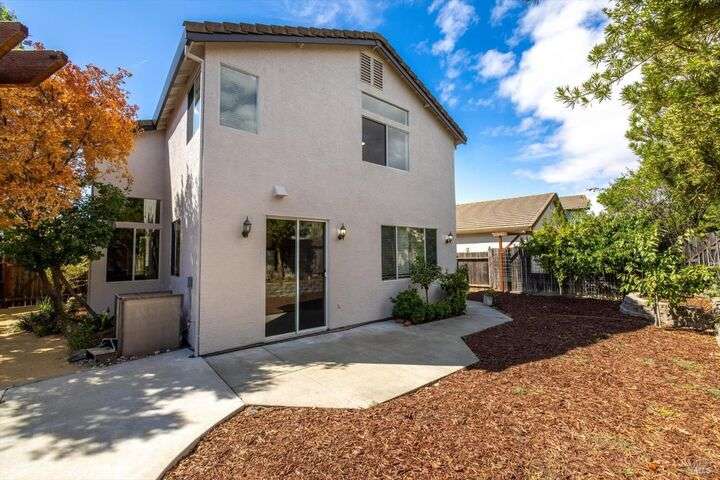 Welcome to this beautiful home in the highly desirable Westgate subdivision within the Travis School District. Situated on a spacious lot with room for a pool, this property offers comfort, function, and charm inside and out. Step inside to find a light-filled living room with corner windows, wood laminate flooring, and a kitchen designed for convenience featuring ample cabinetry, a pantry cabinet, and island. Main level offers a bedroom and full bathroom plus Upstairs, a large flex room with built-in cabinets and bookcases for a family room, home office, or could easily be converted into a 5th ensuite bedroom. The primary suite is a true retreat, boasting natural light, a ceiling fan, dual vanity, large soaking tub, separate stall shower, and a generous walk-in closet. Additional highlights include an indoor laundry room with gas dryer outlet and thoughtful storage throughout. Enjoy the outdoors in the beautifully landscaped front and backyard with brick patio, trellis, and side yard storage shedperfect for entertaining or relaxing evenings. All of this in a welcoming family neighborhood with easy access to the Fairfield-Vacaville Amtrak station, shopping, dining, and more.
