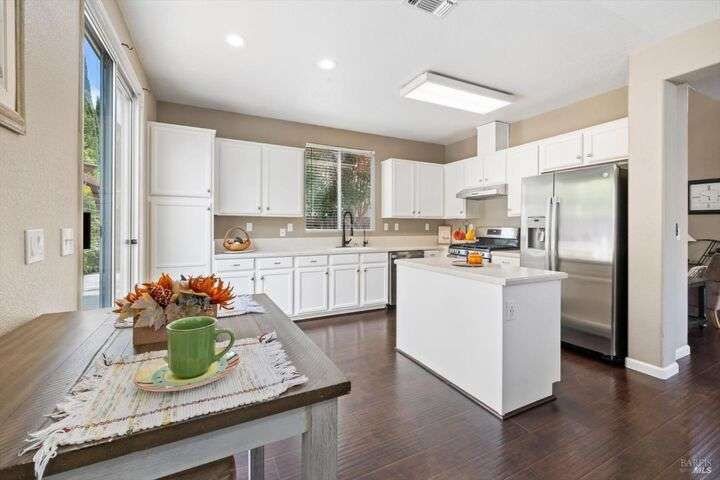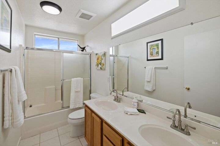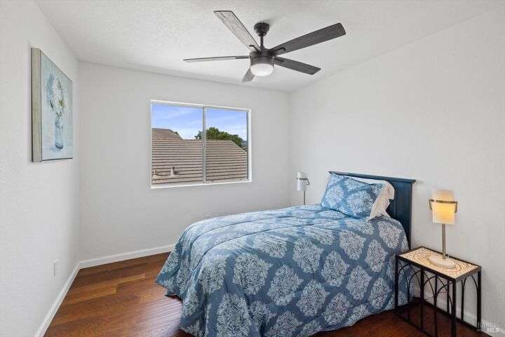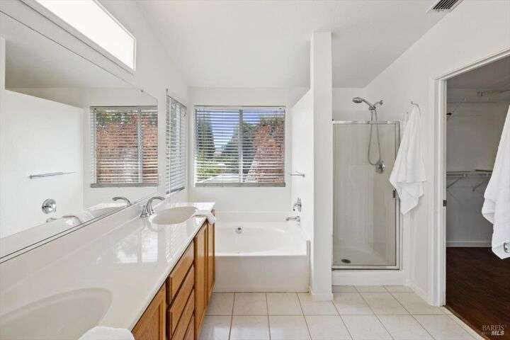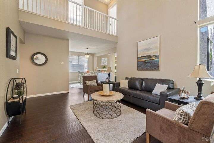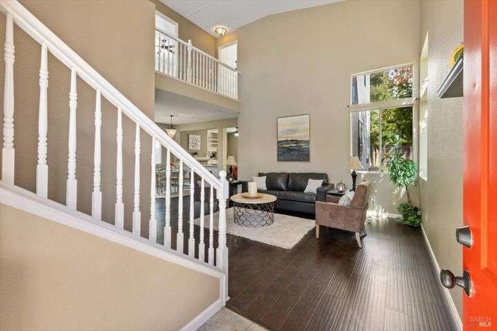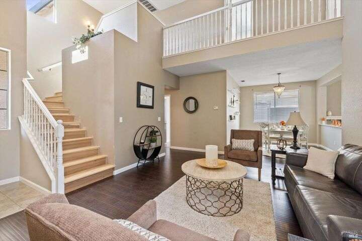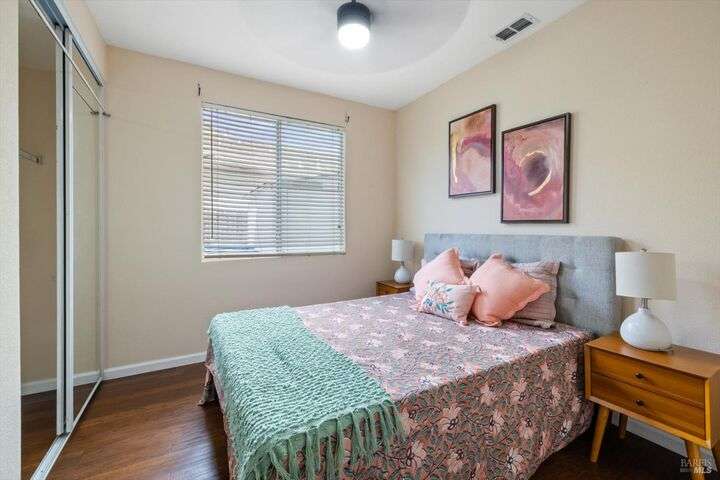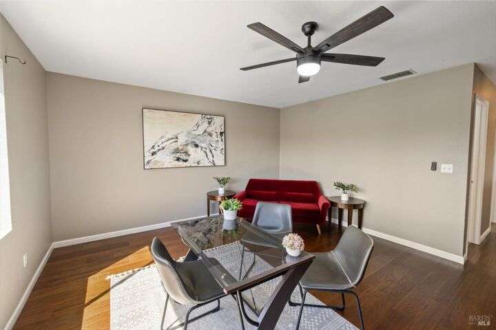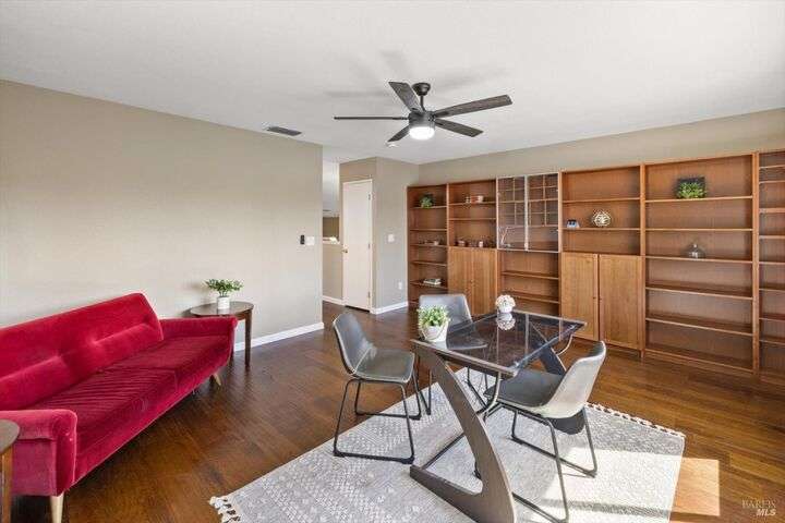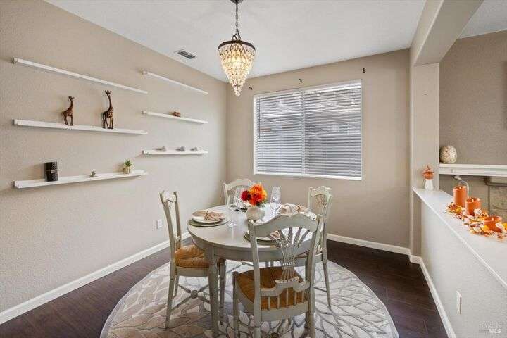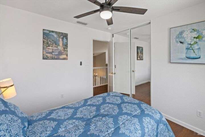 Welcome to this beautiful home in the highly desirable Westgate subdivision within the Travis School District. Situated on a spacious lot with room for a pool, this property offers comfort, function, and charm inside and out. Step inside to find a light-filled living room with corner windows, wood laminate flooring, and a kitchen designed for convenience featuring ample cabinetry, a pantry cabinet, and island. Main level offers a bedroom and full bathroom plus Upstairs, a large flex room with built-in cabinets and bookcases for a family room, home office, or could easily be converted into a 5th ensuite bedroom. The primary suite is a true retreat, boasting natural light, a ceiling fan, dual vanity, large soaking tub, separate stall shower, and a generous walk-in closet. Additional highlights include an indoor laundry room with gas dryer outlet and thoughtful storage throughout. Enjoy the outdoors in the beautifully landscaped front and backyard with brick patio, trellis, and side yard storage shedperfect for entertaining or relaxing evenings. All of this in a welcoming family neighborhood with easy access to the Fairfield-Vacaville Amtrak station, shopping, dining, and more.