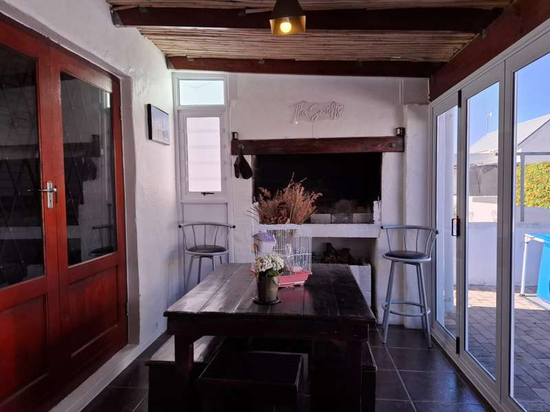 Three-Bedroom Residence in Velddrif Quays Discover this well-appointed three-bedroom home situated in the sought-after Velddrif Quays. Boasting convenient access to local amenities and within walking distance of the serene riverfront, this property offers a desirable lifestyle. The residence features a spacious open-plan living area with a central fireplace, a well-equipped kitchen with a serving peninsula granite counter top. Additionally an enclosed patio complete with a built-in braai completes the entertainment area. The main bedroom includes an en-suite bathroom, while two additional bedrooms share 1 a full bathroom. Parking is provided by a single garage and a double carport. Contact me for more information