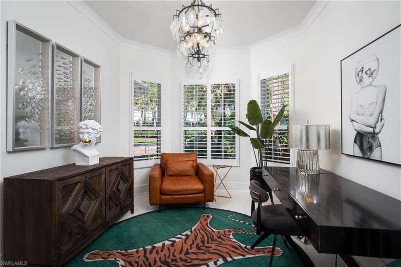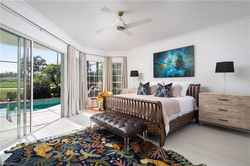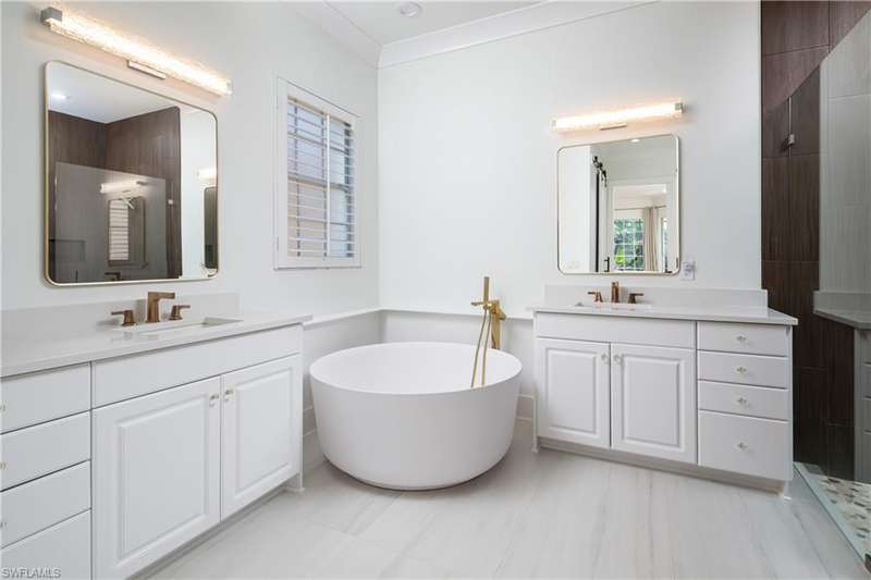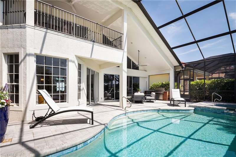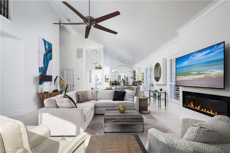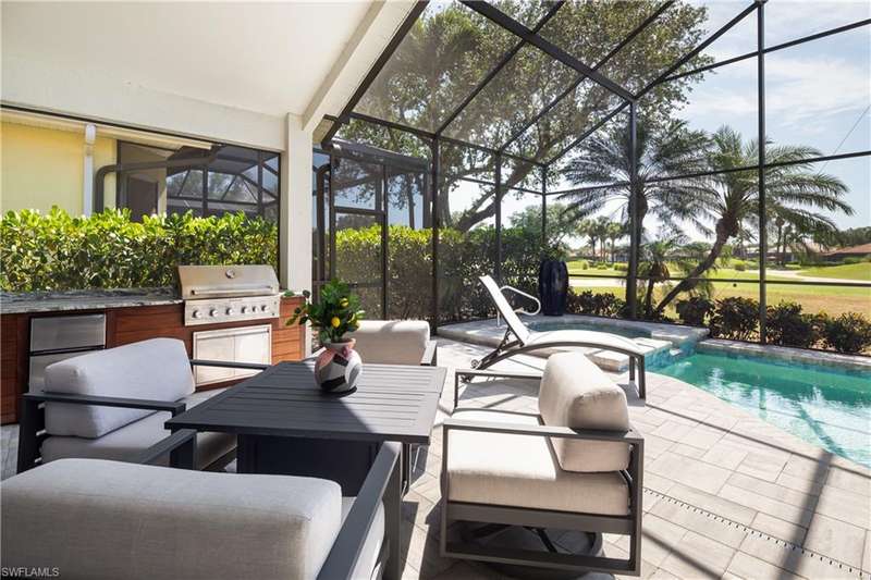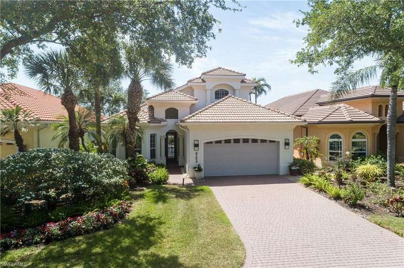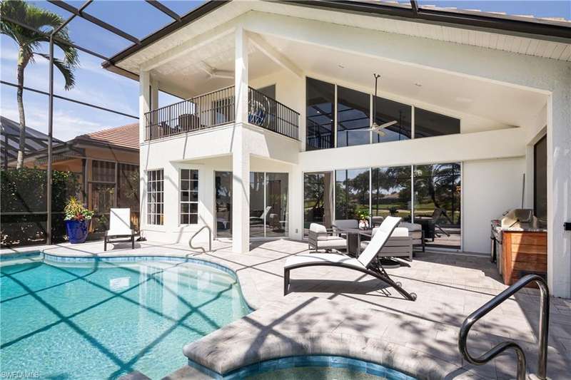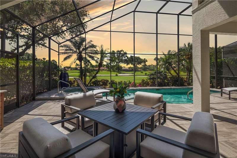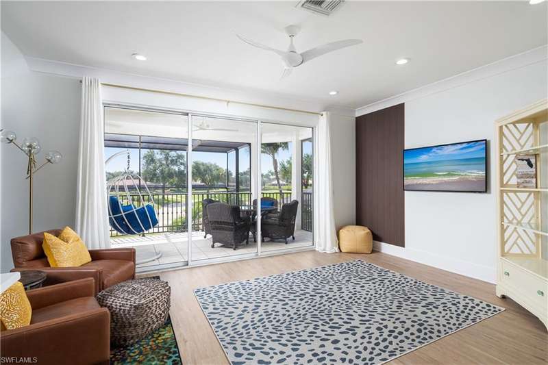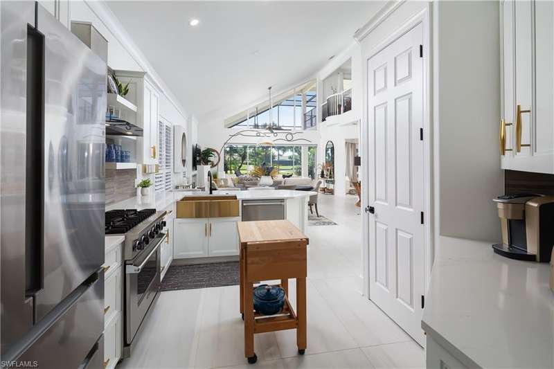 Introducing this immaculately renovated residence nestled within the gates of Kensington Golf & Country Club. This Sheffield Villas home has been thoughtfully updated and decorated to create a move in ready opportunity for the discerning buyer. The highly desirable western rear exposure showcases an outstanding view across multiple golf holes and a lake. A recent renovation project completely transformed the interior & exterior of this luxurious 2-story villa. This home features over 2900 sf of living area, 3 Bedrooms, 3 Bathrooms, a Loft, a Study, and a Den across two levels. The Kitchen features Quartz countertops, updated cabinetry, Viking & Bosch appliances, and seamlessly flows into the living spaces and out onto the lanai. Just off the main living area, enjoy sun filled evenings in the spacious Primary Retreat. The downstairs Den has been modified into an intimate media room for a tranquil viewing experience. Upstairs, guests will have their own private haven consisting of multi